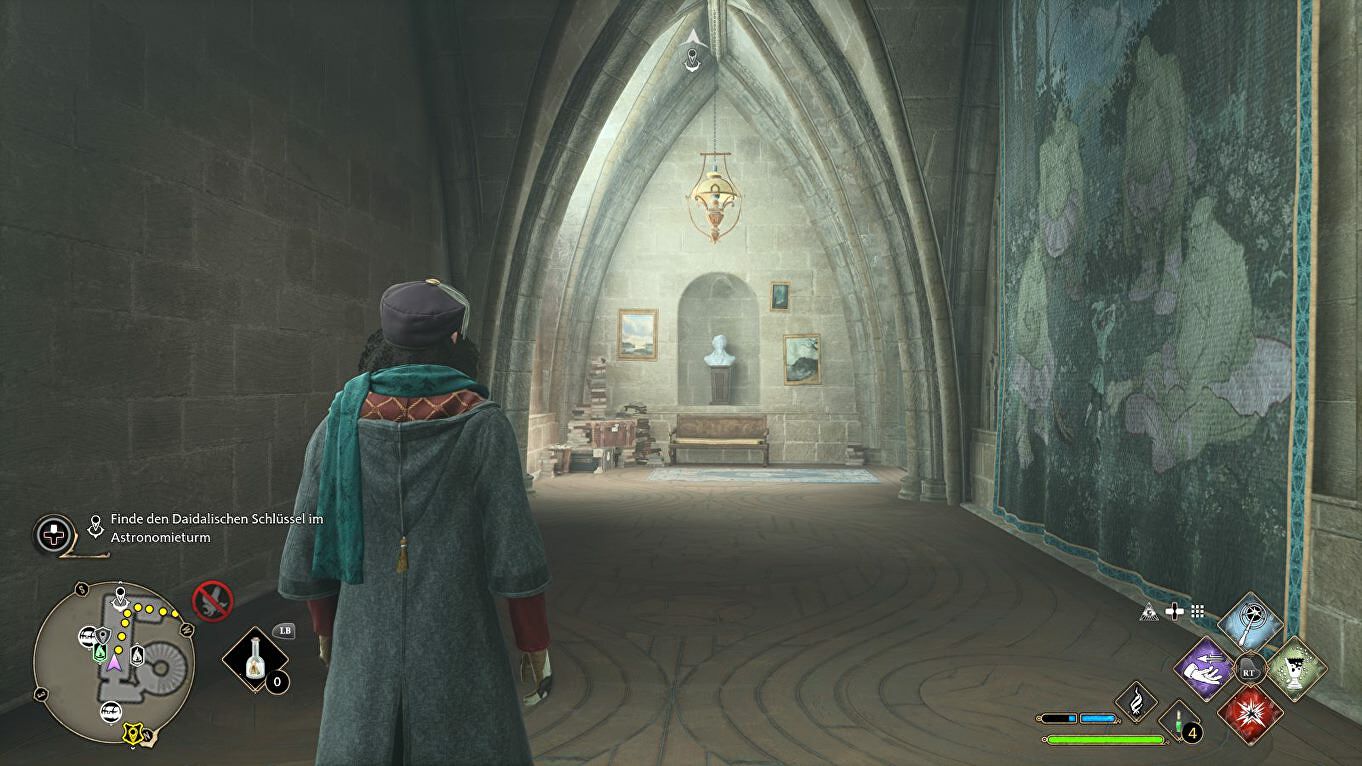 Ga naast de Floo Flame de trap op naar de Astronomy Tower. Als je de Floo Flame daar al geactiveerd had, kan je ook rechtstreeks daarheen met fast travel om wat tijd te besparen.