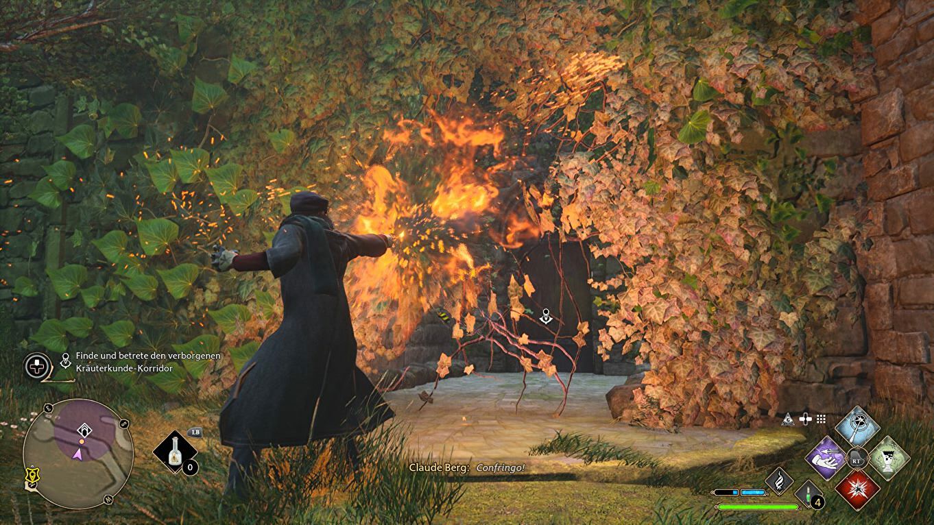 Gebruik een vuurspreuk zoals Incendio of Confringo om de planten te verbranden. De doorgang is nu vrij en we kunnen de Hidden Herbology Corridor in.