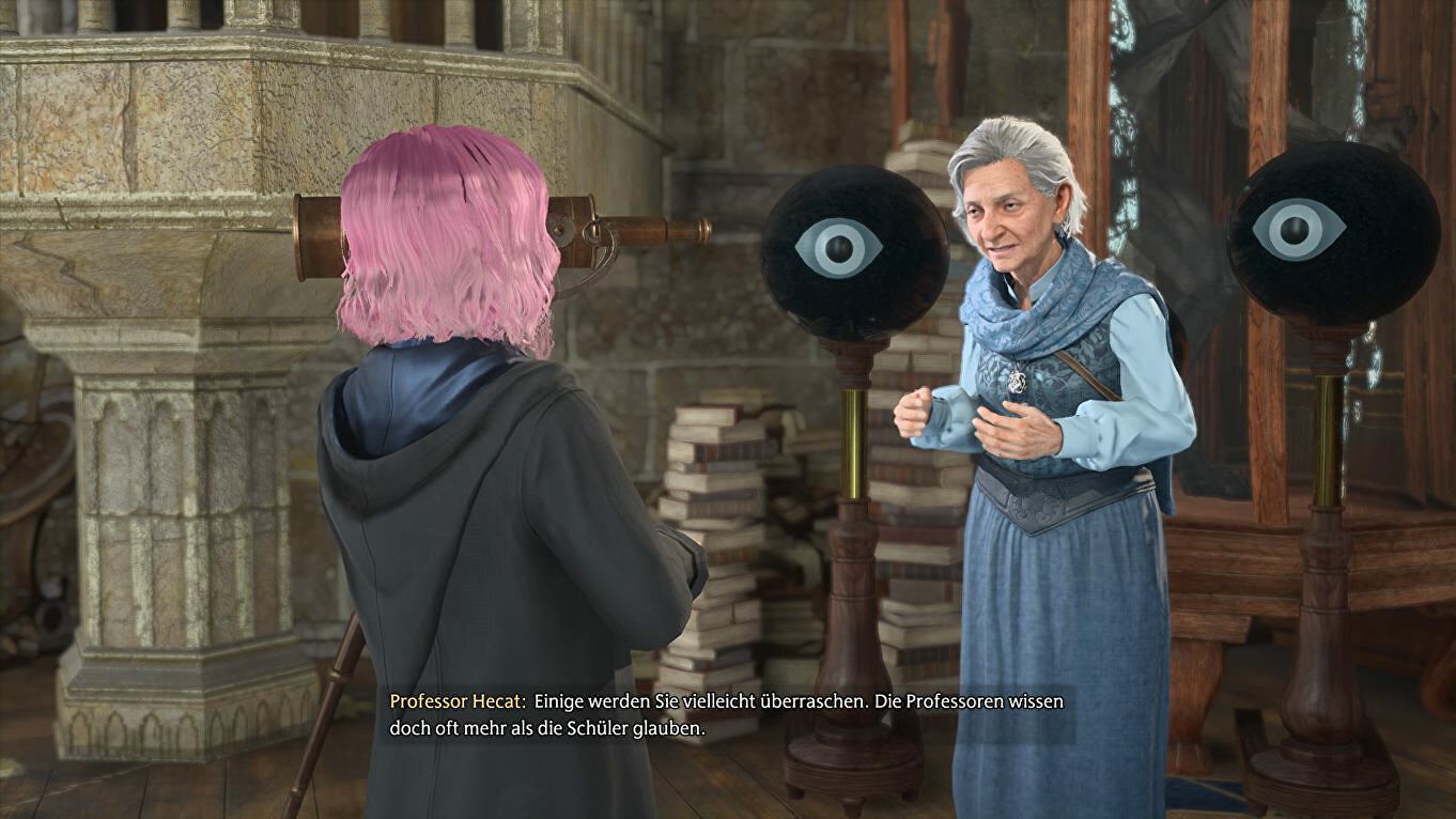 Professor Hecat kan je vinden in de Astronomy Wing en is niet zo ver lopen van Professor Fig. Gebruik het Charmed Compass om je de weg te wijzen.