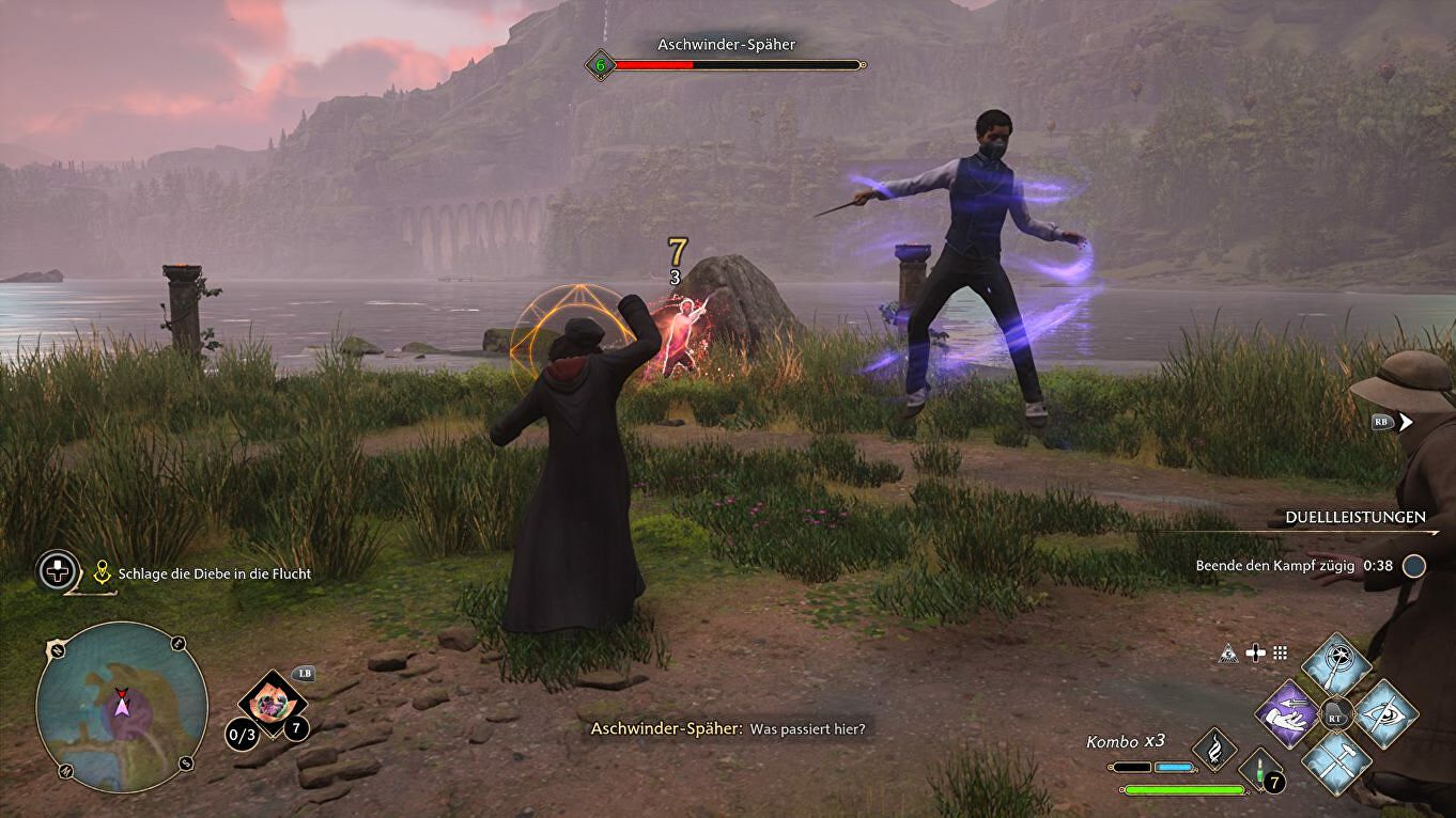 Je zal namelijk altijd wel vijanden tegenkomen waar je Incendio tegen moet gebruiken (en je hebt er maar vijf nodig). Ontwijk ook nog eens tien aanvallen door te rollen en het is al voor elkaar. Je kan deze opdracht ook uitvoeren tijdens de duels in de Clock Tower van Hogwarts in de side quest "Crossed Wands".