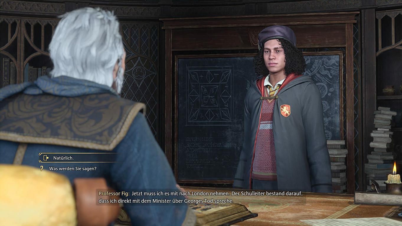 Deze quest start automatisch na het voltooien van de vorige quest "Secrets of the Restricted Section". We zijn heelhuids teruggekeerd uit onze stiekeme tocht door de bibliotheek en vonden het boek in de verboden afdeling. Professor Fig is natuurlijk erg geïnteresseerd in je avonturen. Ga dus zo snel mogelijk naar hem terug (al mag je natuurlijk ook andere dingen zoals side quests doen nu)