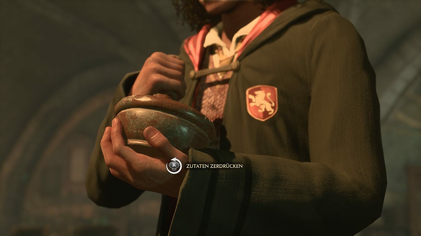 Beweeg de rechter joystick om de ingrediënten te pletten met een stamper. Voeg vervolgens Dittany toe gevolgd met Horklum Juice.