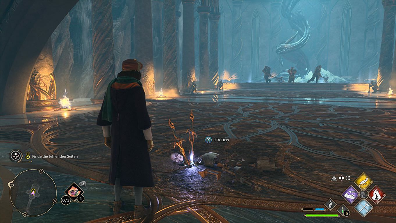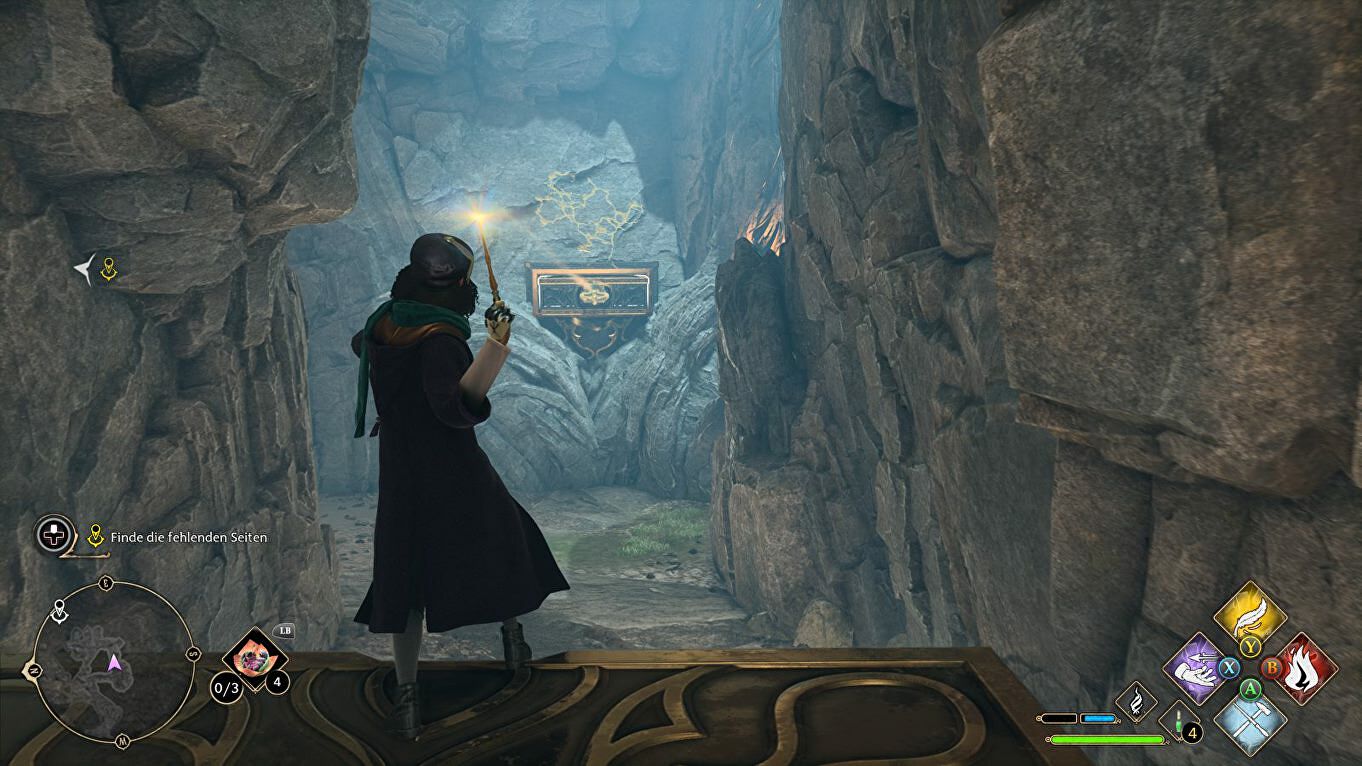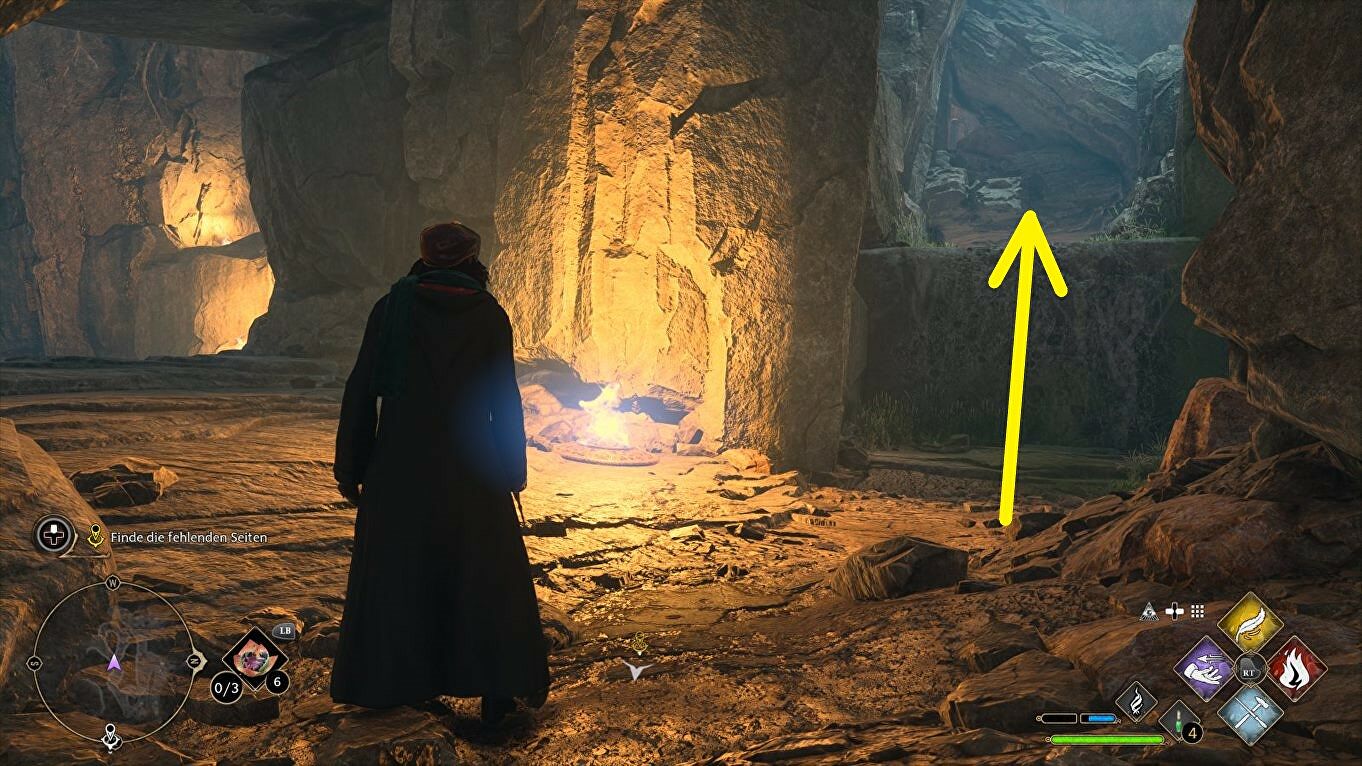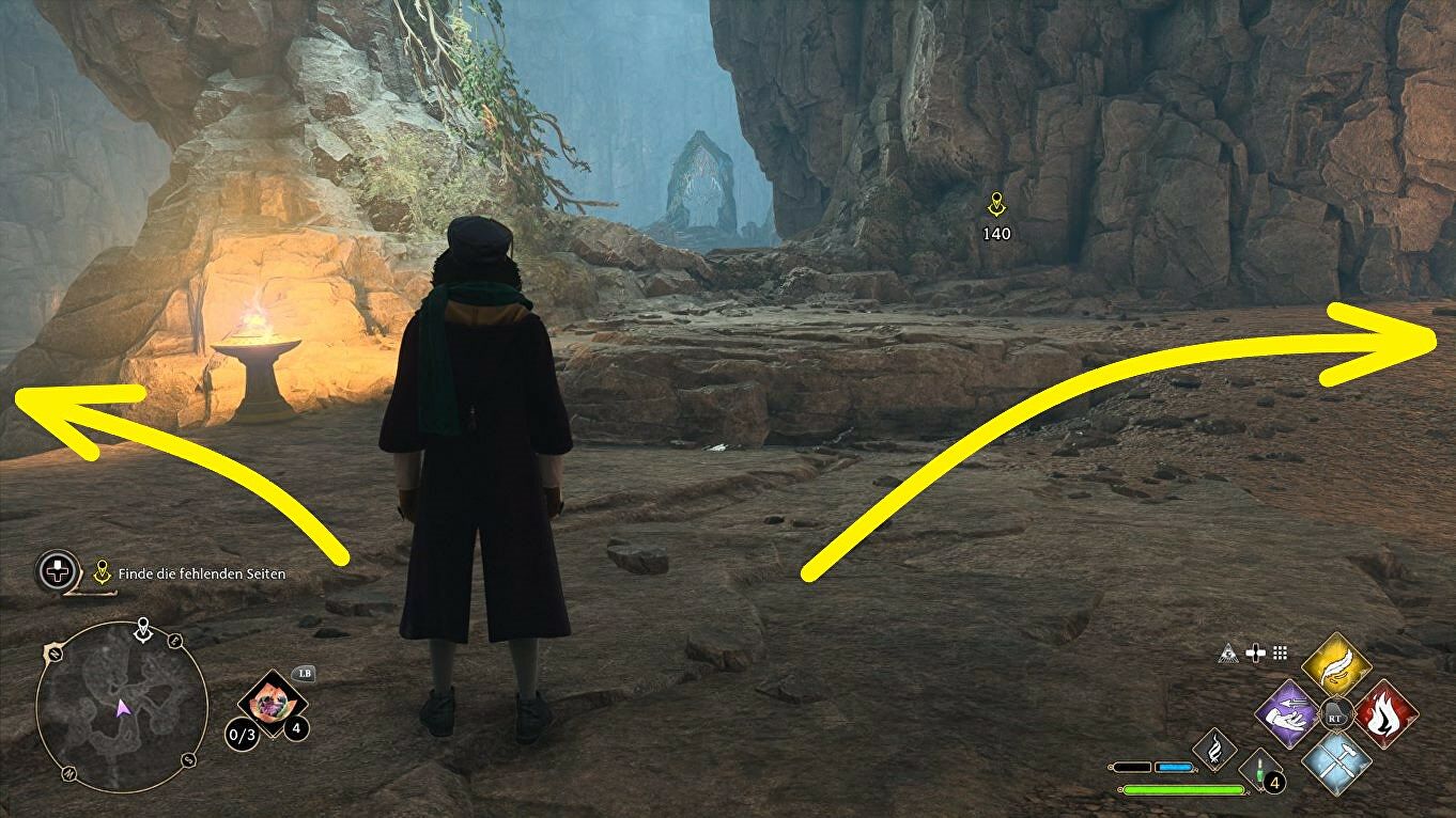Rechts kan opnieuw Accio gebruiken om via de platformen over de afgrond te gaan. Je hebt nu de keuze om rechtdoor te gaan om de missie te voltooien, maar er zijn ook twee andere paden die je kunt nemen.