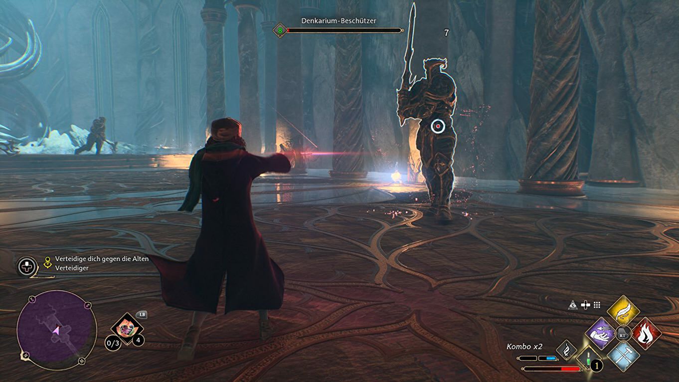 Het gaat van kwaad naar erger want zodra je deze eerste Pensieve Protector verslagen hebt, komen er nog twee extra tevoorschijn. Ze moeten echter een hele afstand leggen. Bestook ze dus met spreuken terwijl ze naar je toe gaan.