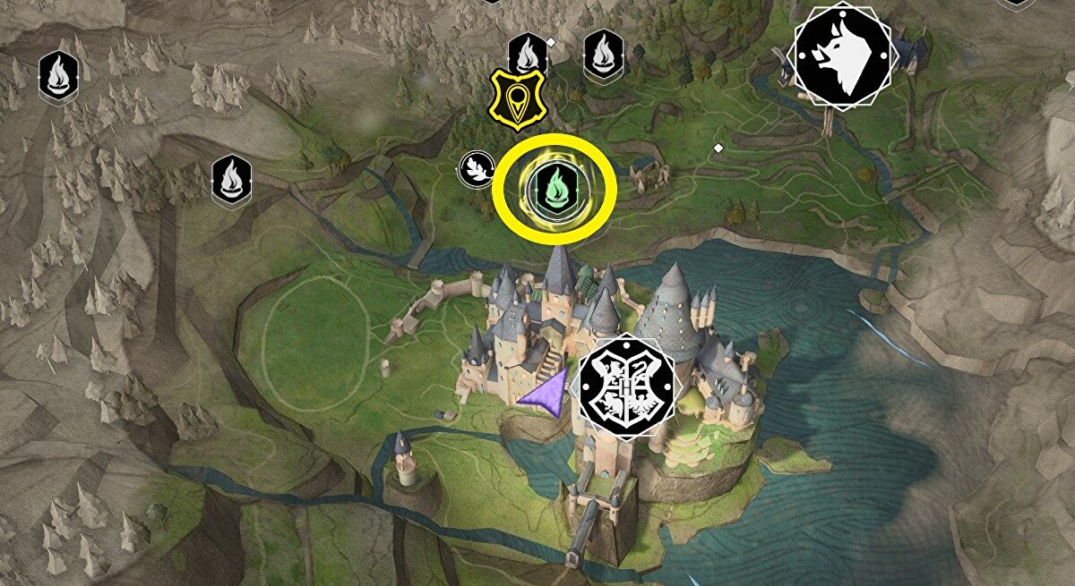 Normaal gezien heb je al de Forbidden Forest Floo Flame van toen je hier passeerde tijdens de main quest "Welcome to Hogsmeade".