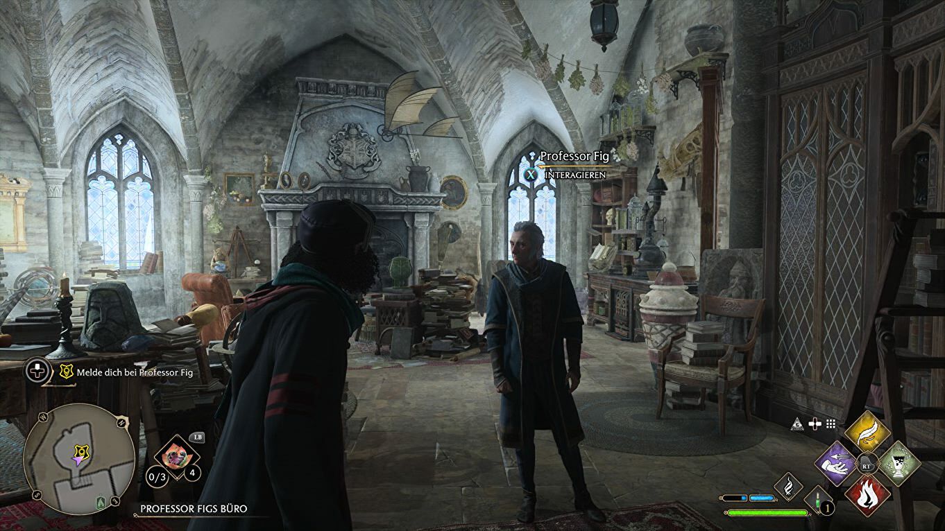 Ga per fast travel naar Professor Fig's Classroom, waar de man al op je wacht. De korte versie van zijn relaas: de minister in Londen is niet geïnteresseerd in zijn verhalen over goblins en het boek (dat hij gelukkig terug mee heeft gebracht).