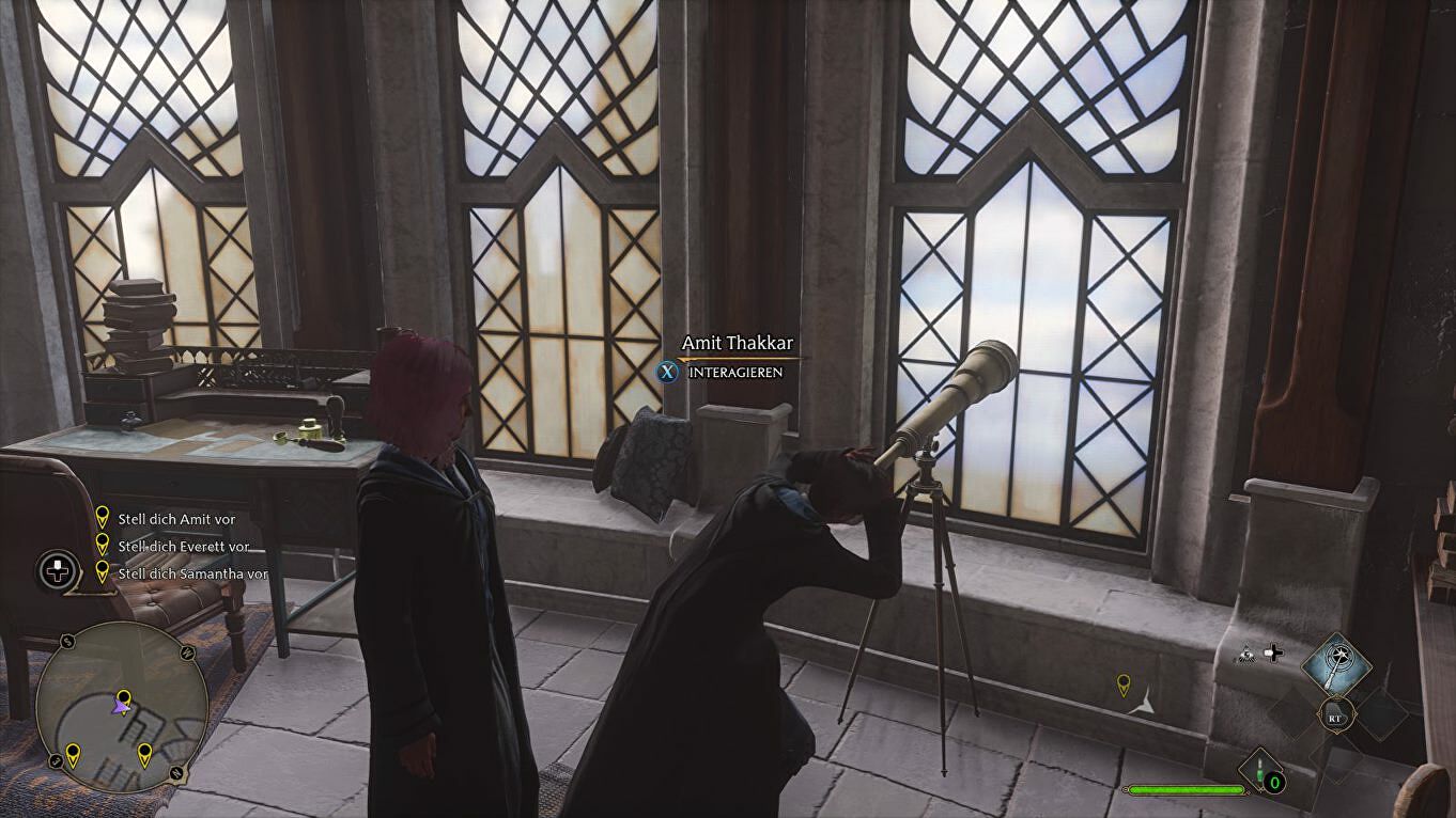 Na een korte uitleg gaan we via fast travel naar de Central Hall, waar Weasley zijn rondleiding beëindigd. Hier kan je ook nog een paar vragen stellen als je dat wil.