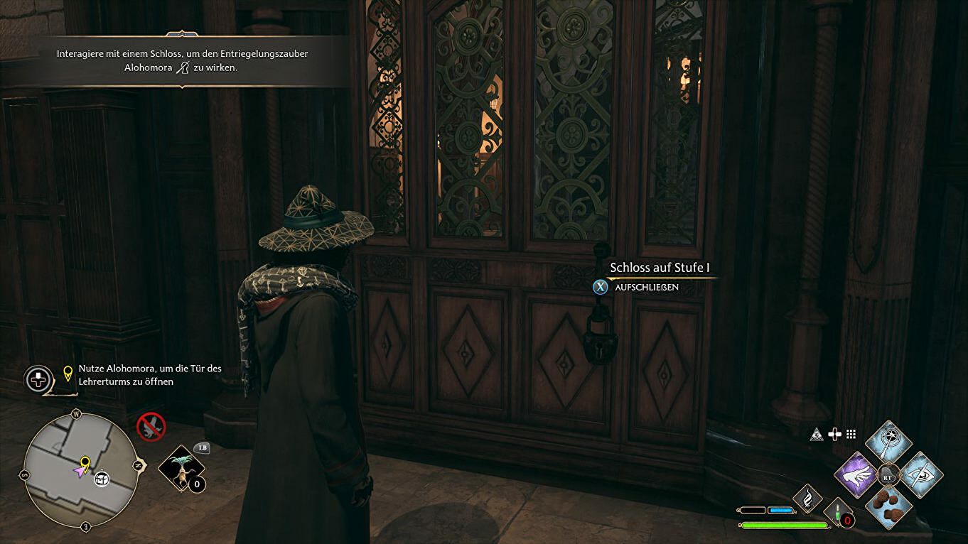Interacteer met het slot en je gebruikt automatisch Alohomora. Nu moet je een mini-game voltooien om de deur te openen.