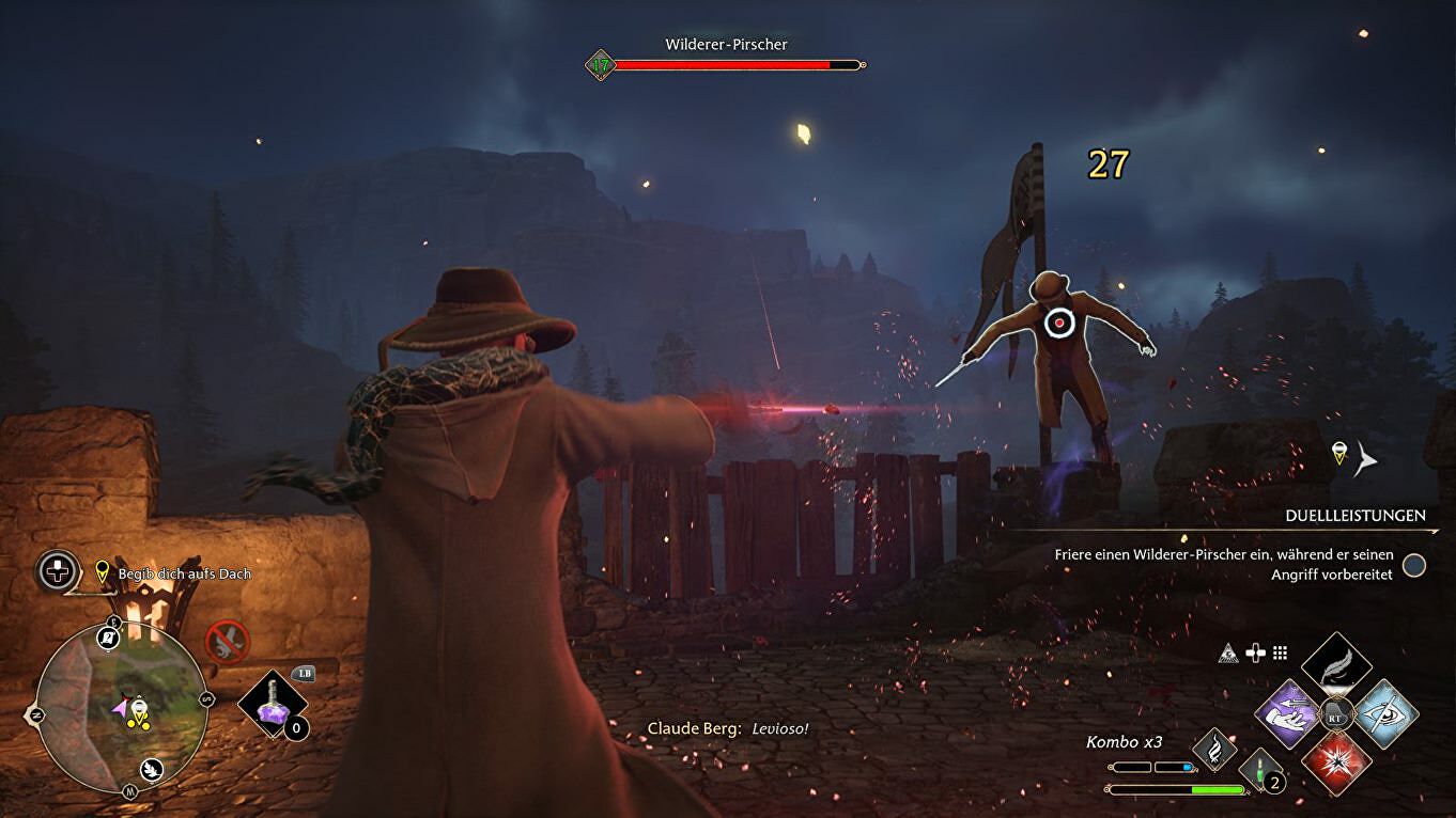 Breek het slot met Alohomora, grijp alle items in de kamers erachter en klim verder naar het dak rechts. Een paar Poacher Rangers vallen je aan. Schakel ze uit.