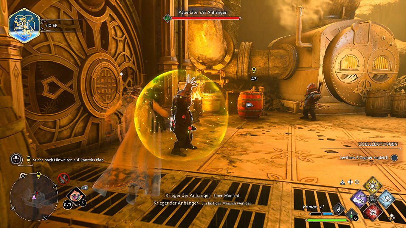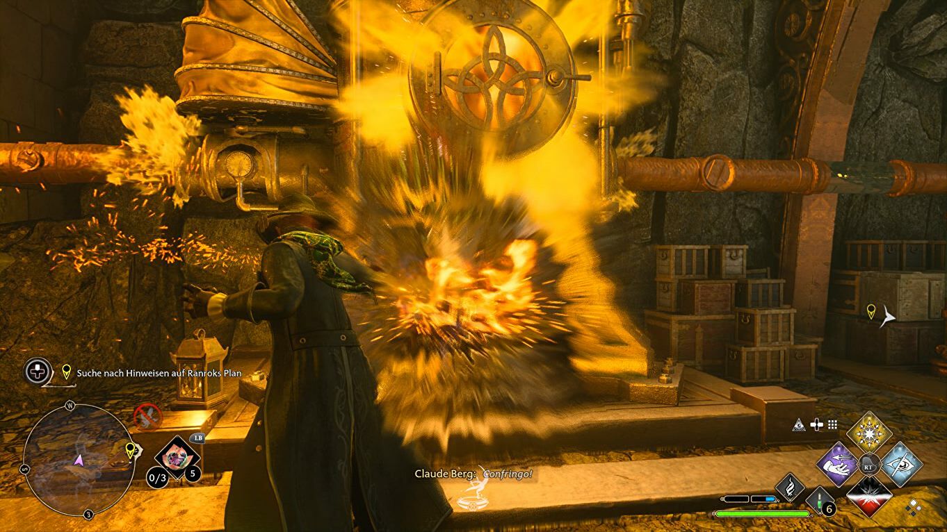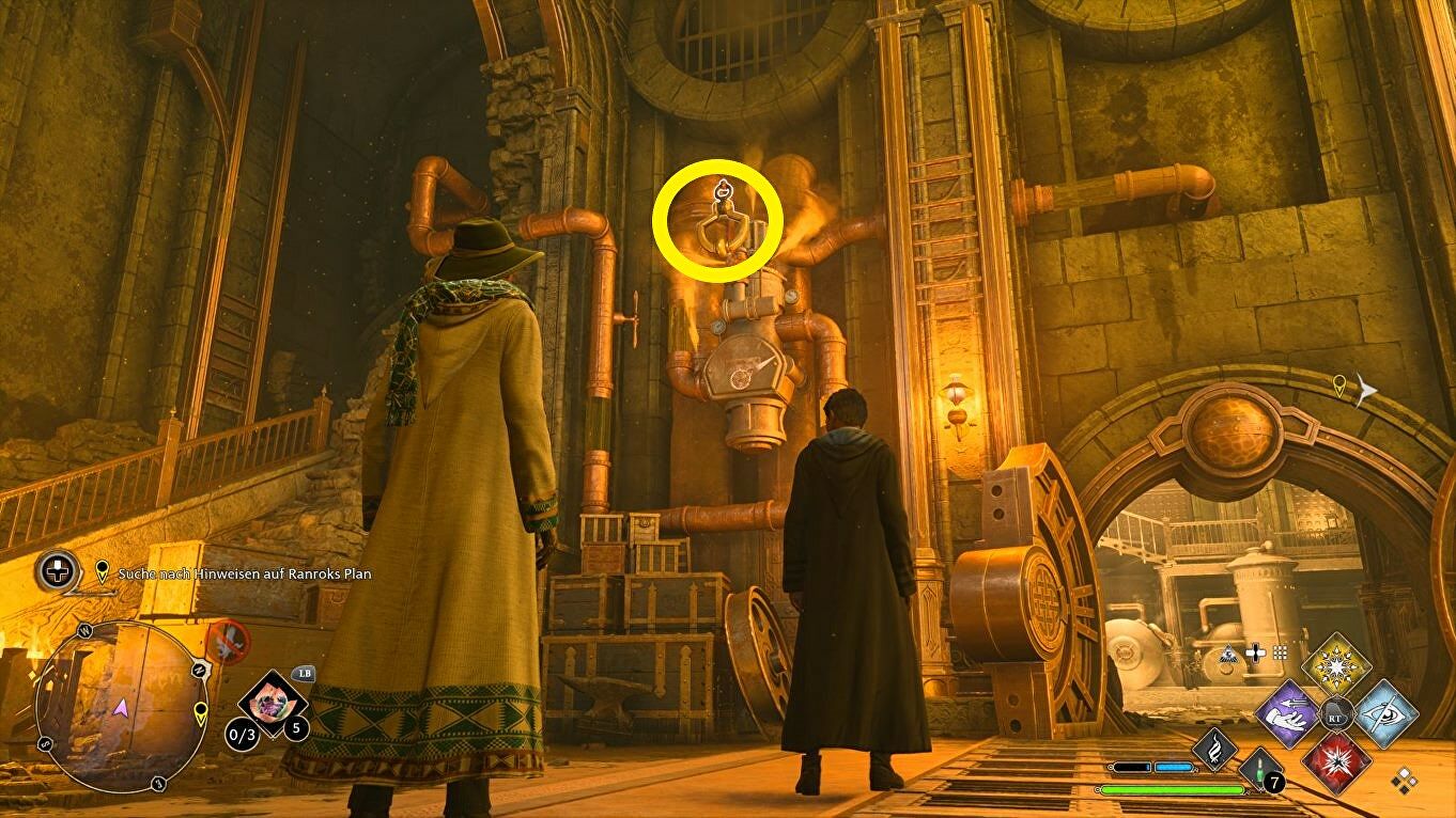 In deze volgende kamer vind je wat gold en een oven die je kunt aansteken met een vuurspreuk. Doe dit en keer terug door de deur met het oog. Daarnaast heb je nu een hendel die je met Accio kunt bewegen: