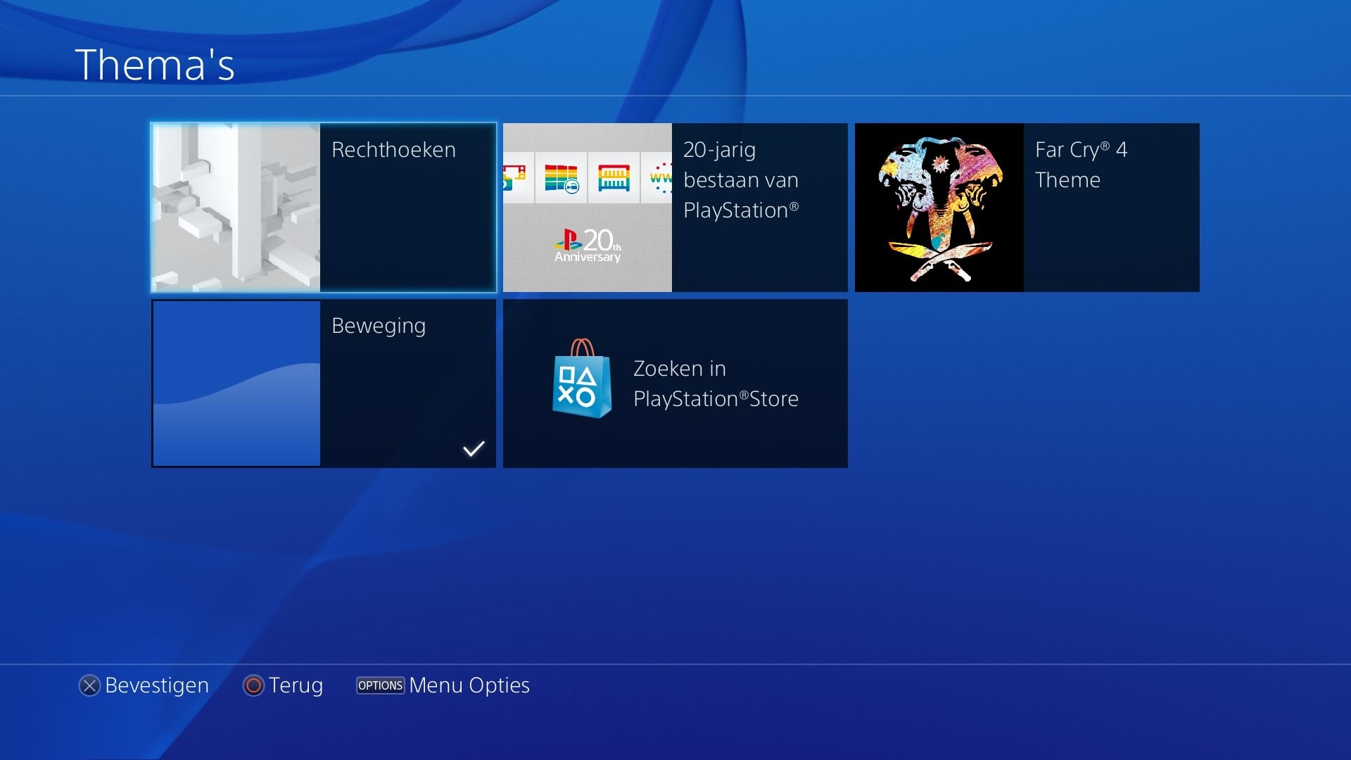 Tip: Voor de meeste van onderstaande opties heb je minstens firmware v2.00 nodig. Voor zover je dat nog niet gedaan hebt: verbind je PlayStation 4 met het internet. Als het goed is start er automatisch een update die de nieuwe firmware installeert. Dan pas kun je met dynamische thema's aan de slag.