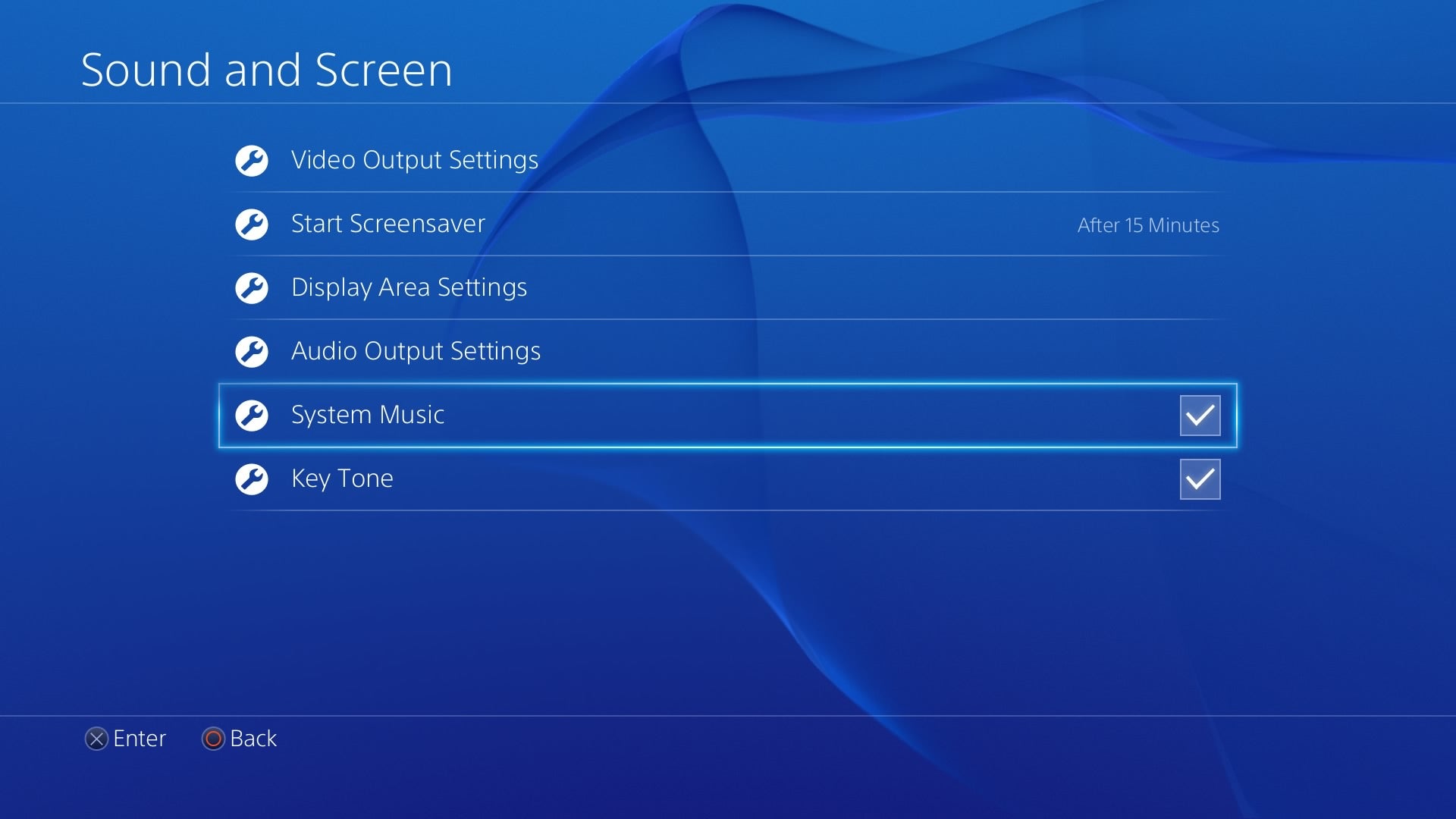 By System Music (Systeemmuziek) en Key Tone (Toets toon) kun je respectievelijk de achtergrondmuziek van het hoofdmenu uitzetten en het geluidje dat je hoort als je selecties maakt. Het wordt er wel een beetje een stille boel van, vind je niet?