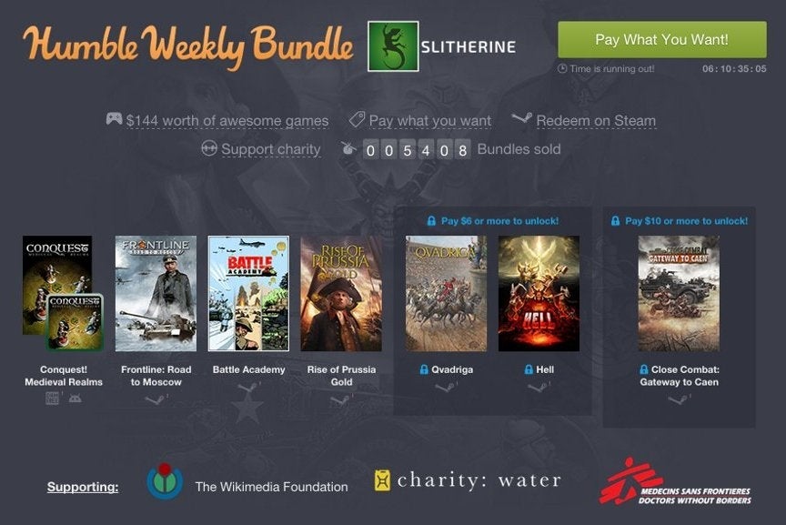 Slitherine Software is in 2000 opgericht en staat voornamelijk bekend om zijn oorlogsgerelateerde games. Het pakket staat in teken van liefdadigheidsorganisaties The Wikimedia Foundation, Charity: Water en Artsen zonder Grenzen.