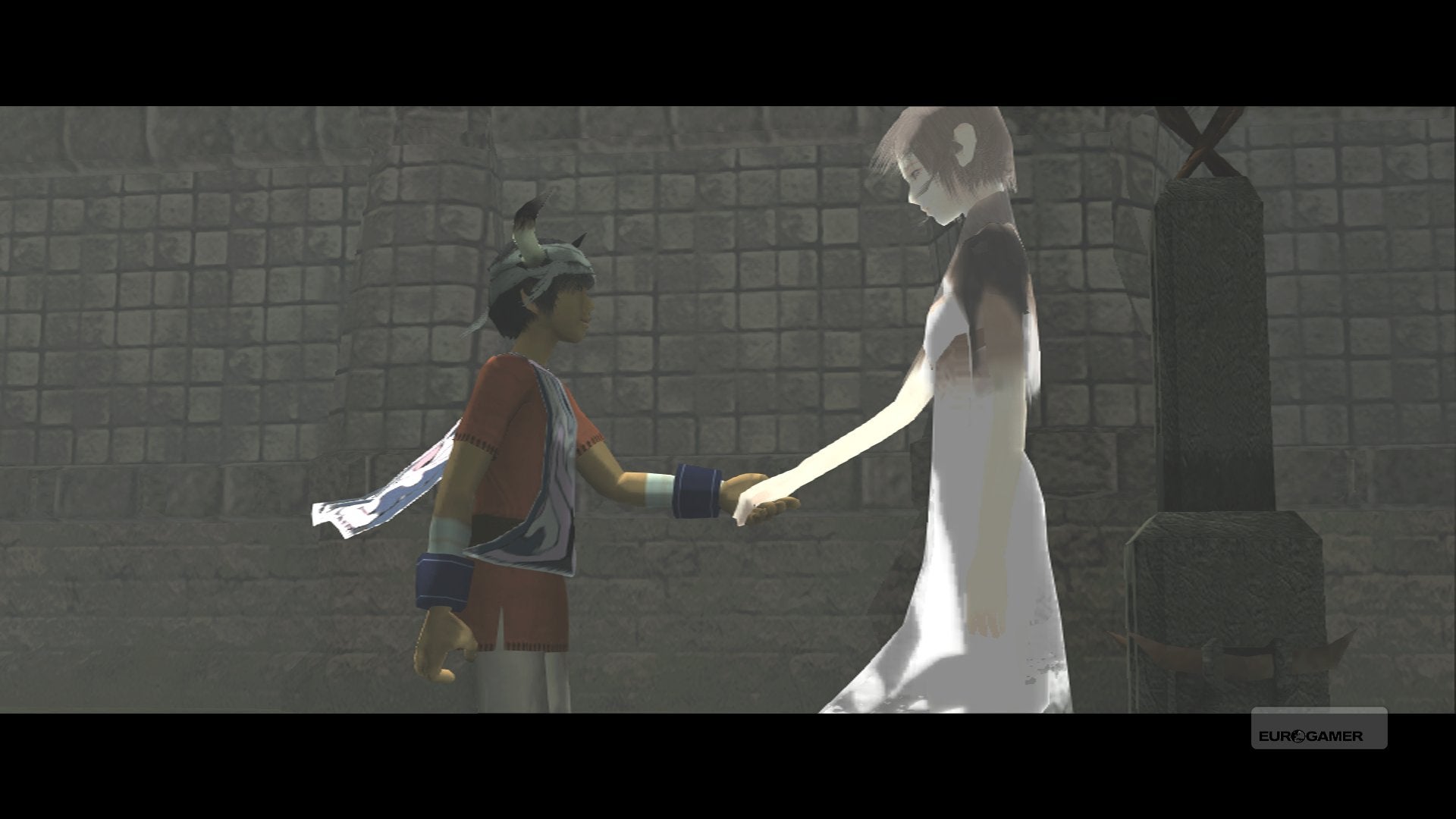 Samenwerking tussen de twee personages komt voortdurend aan bod in Ico. Eigenlijk kun je de game makkelijk bestempelen als een van de enige singleplayer co-op games, want je kan tachtig procent van alle puzzels niet oplossen zonder de hulp van Yorda. Zoals gezegd moet je het meisje letterlijk bij de hand nemen, waardoor je ze overal mee naartoe kan sleuren. De animaties die gepaard gaan met hand in hand lopen zijn werkelijk aandoenlijk om te zien, net zoals wanneer je het jongetje - een beetje als voorloper van Nathan Drake in Uncharted - platformgewijs kasteelmuren, kettingen en ladders laat beklimmen. Net zoals vechten verloopt springen en klimmen wat klungelig, maar vreemd genoeg stoor je je daar haast nooit aan.