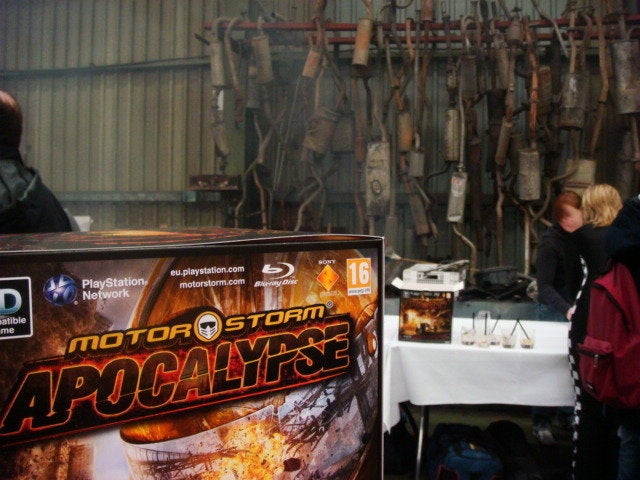 Hoe vier je de lancering van een nieuwe MotorStorm beter dan een autokerkhof te bezoeken? Misschien door zelf in een racebak te kruipen en op wat veldbanen rond te scheuren, maar de perstrip die Sony gisteren organiseerde was ook niet van de poes. Een groepje journalisten uit België en Nederland mocht zich te goed doen aan enkele typisch mannelijke activiteiten, waaronder het stukslaan van een bestelwagen en het aanschouwen van een hoop exploderende auto's.