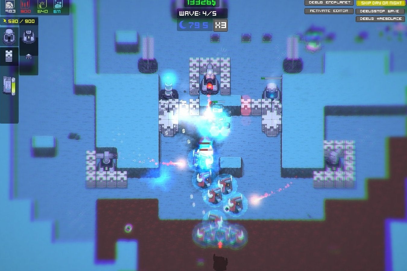 In klassieke tower defense-stijl bouw je een verdediging om die robots tegen te houden. Je knoeit daarbij ook met het DNA van de mensen om ze om te toveren tot ware vechtmachines, inclusief laserschietende ogen.