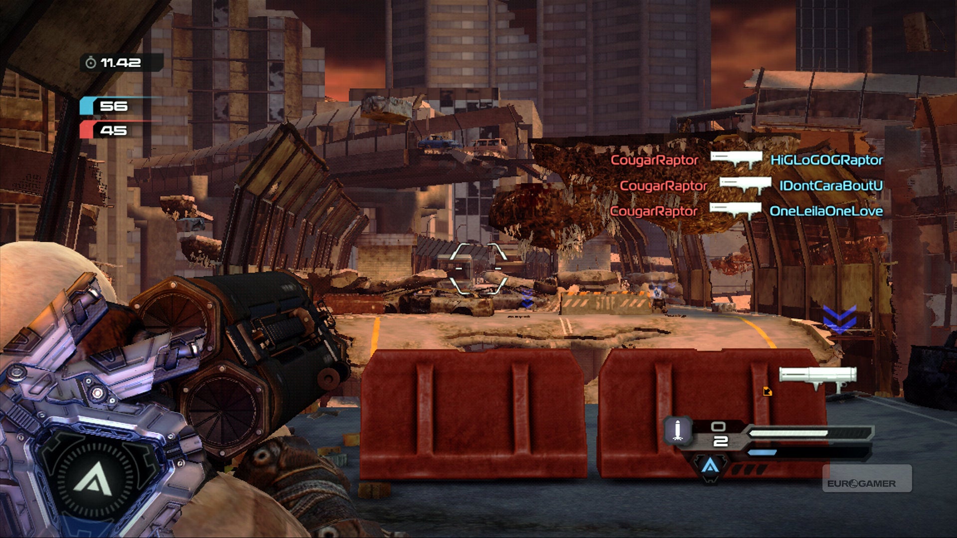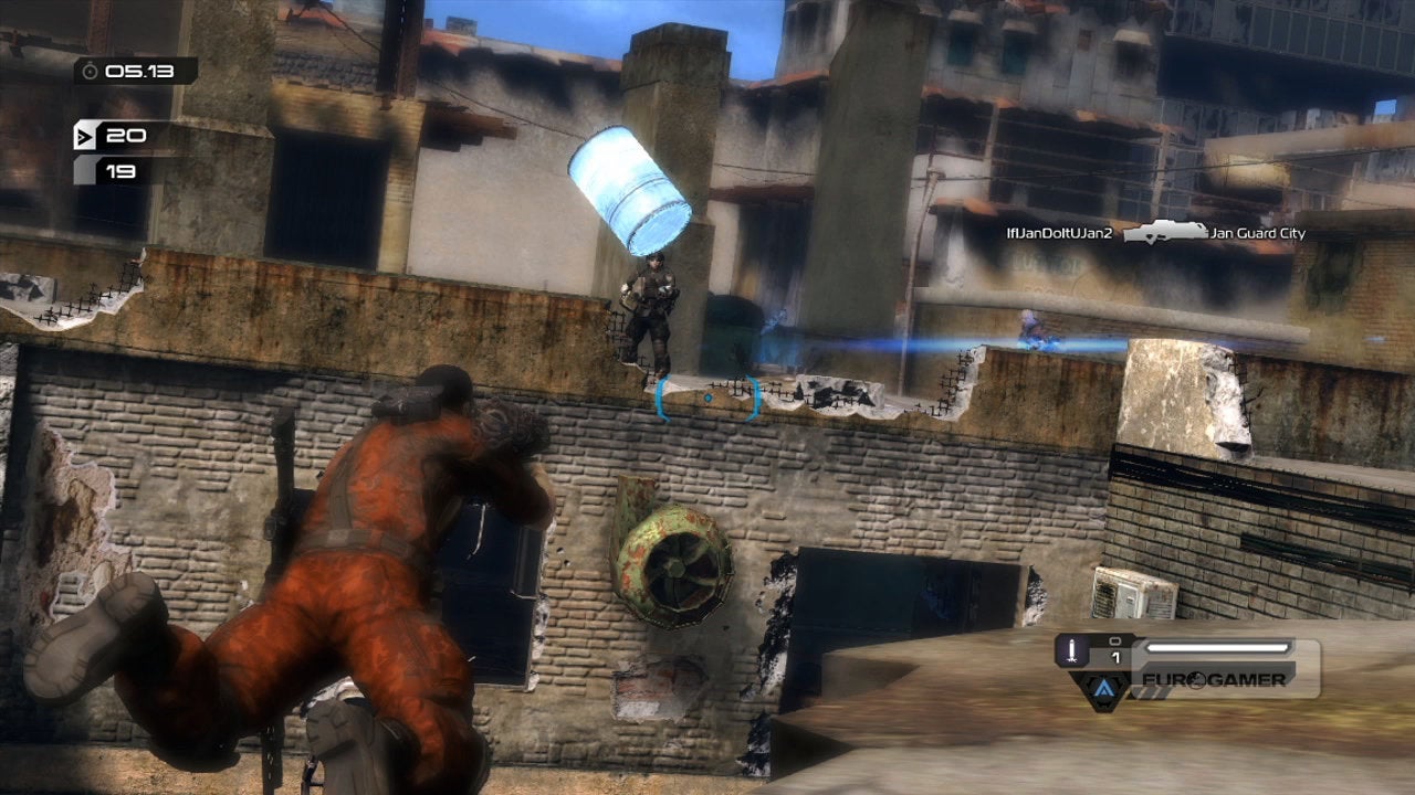 Verder kan je vijanden boven hun cover uit laten zweven, om ze vervolgens naar je toe te trekken en uiteen te rijten of richting andere vijanden te schieten. Heel handig, want het kan al eens voorkomen dat je zonder munitie valt. Ook jij kunt de lucht ingeschoten worden, maar dat gebeurt eigenlijk te weinig. De rode modus kan tevens een tijdelijk schild opwekken en de blauwe maakt kleine maar krachtige aardbevingen mogelijk. Toch betrapte ik mezelf er regelmatig op al deze features eerder zelden te gebruiken dan vaak, in tegenstelling tot bijvoorbeeld de Gravity Gun uit Half-Life 2.