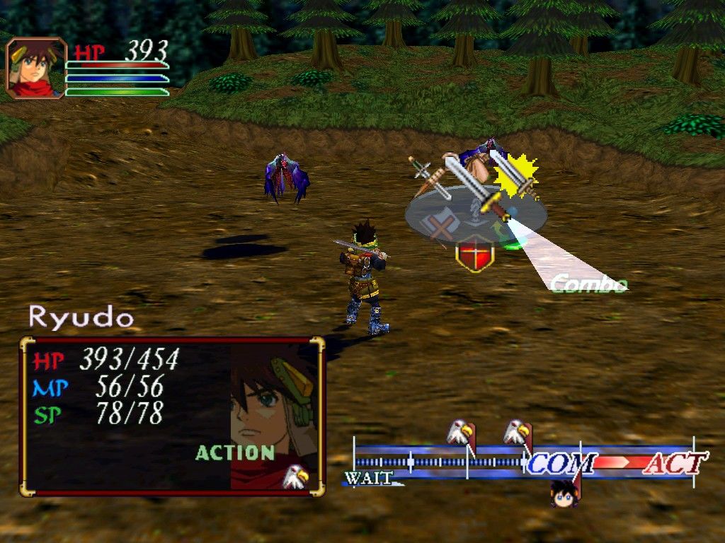 De RPG gebruikt een vechtsysteem dat uniek is voor de Grandia-serie. Beurten van teamleden en vijanden worden aangeduid op een balk. Wanneer je eerder toeslaat dan de tegenstander, kun je hem 'terugduwen' op die balk zodat zijn beurt wordt uitgesteld. Andere Teamleden kunnen vijanden zo ook inhalen.