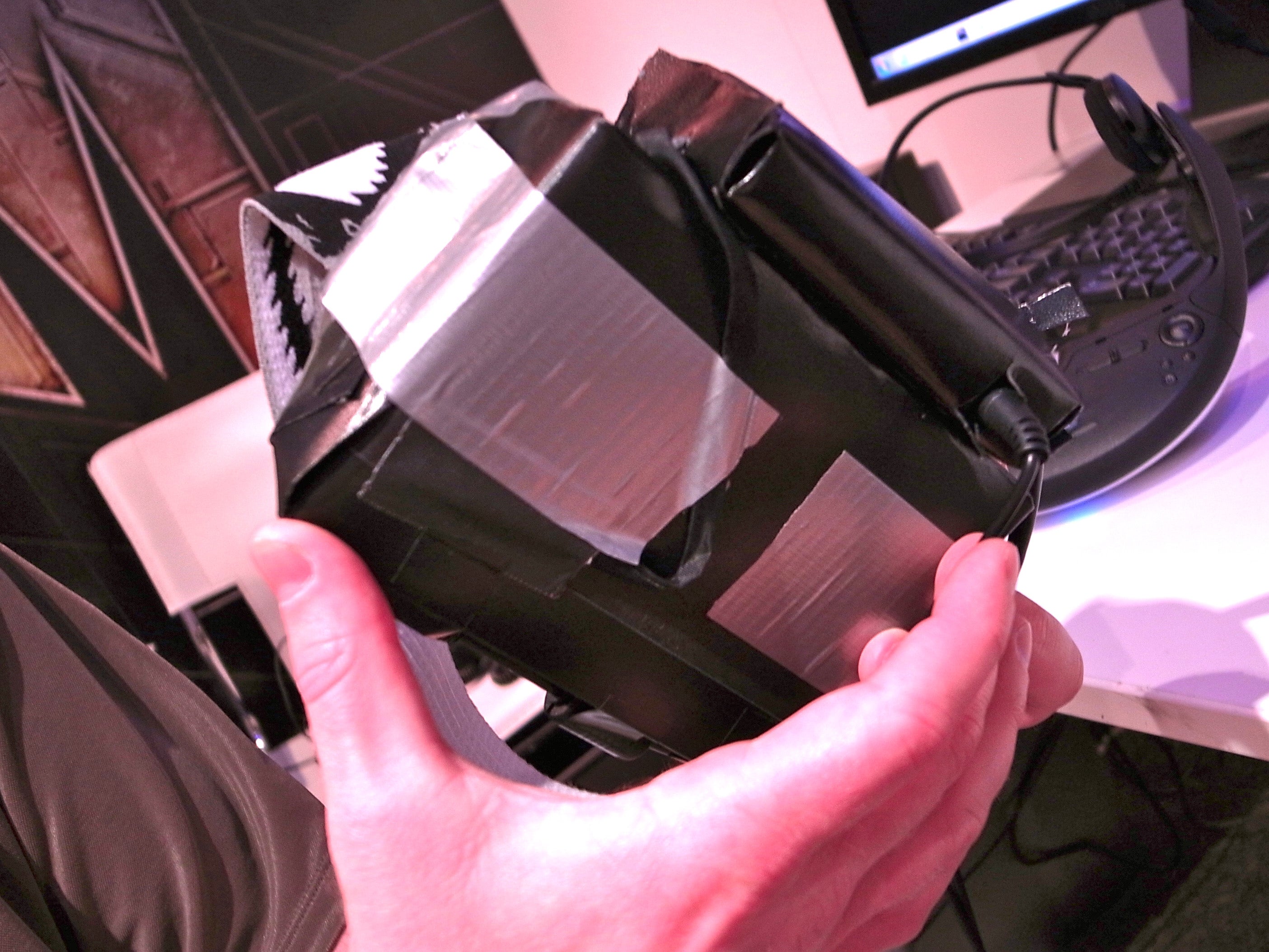 Twee maanden geleden liep John Carmack al rond met zijn zelfgemaakte Virtual Reality bril op de E3-beurs. Alhoewel de onderdelen van het ding slechts met tape en kauwgom aan elkaar hingen (zie onderstaande afbeeldingen), waren de selecte testpersonen danig onder de indruk van het effect dat de headset had op het spel dat ze ermee konden spelen. En die interesse was voor Carmack en zijn achterban genoeg om het product los te laten op de wereld via een Kickstarter.