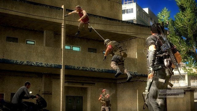 Bovendien kan je in elke actiescène vliegensvlug het gebied doorkruisen dankzij je grappling hook wat tot leuke situaties leidt als niemand je gezien heeft. Je hook is uiteraard ook zelf een tactisch wapen. Je kan er vijanden naar je toe mee sleuren maar je kan even goed het andere eind elders positioneren. Hang die vijand aan de koffer van je wagen vast, spring erin en begin maar te rijden, pret verzekerd. Voertuigen kan je ook aan statische objecten vast ketenen, ideaal tijdens een achtervolgingsscène. De game biedt zonder meer één de grootste sandbox ervaringen ooit aan.