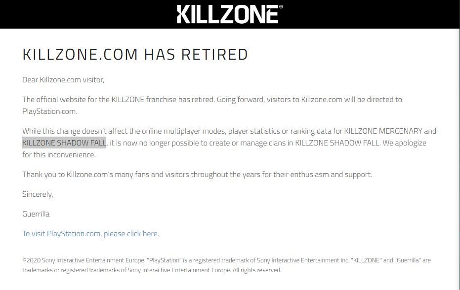 Volgens de ontwikkelaar heeft het offline halen van de website geen impact heeft op de online multiplayer en statistieken van Killzone: Mercenary en Killzone: Shadow Fall. Het is vanaf nu echter niet langer mogelijk om clans te creëren en te beheren in Killzone: Shadow Fall.