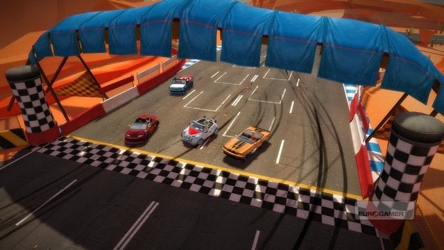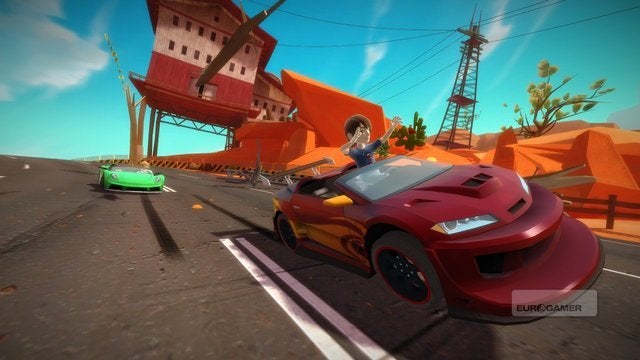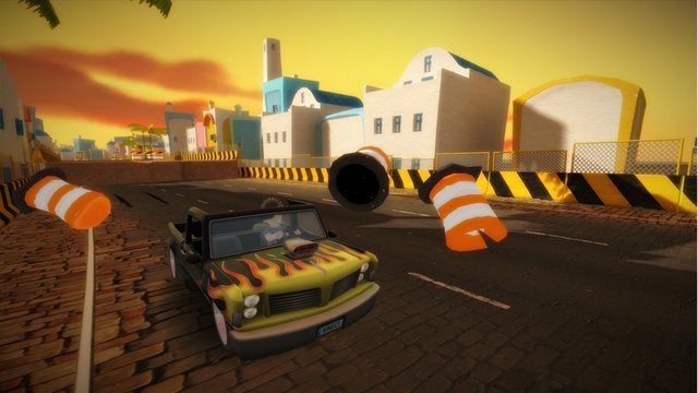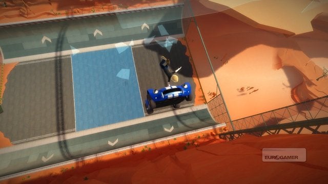 Lukt het je toch om wat snelheid te halen alvorens je richting een van de vele springschansen gaat, dan lanceer je jezelf waarschijnlijk hoog genoeg de lucht in om al zwevend wat stunts met je auto uit te halen. De trucjes haal je uit door voor de sensor achterover of naar voren te buigen, rond te draaien of naar links en recht over te hellen. Je wagen zal vervolgens dezelfde halsbrekende toeren uithalen, al hadden wij persoonlijk graag wat meer afwisseling gezien in de stunts die je kunt maken. De eerste keer draaien, leunen en bukken om in de lucht de waaghals uit te hangen is leuk, maar na de tiende keer is het speciale er al lang vanaf. Na een tijd gebruikten wij de airtime dan ook vooral om onze boost te activeren, gezien je in de lucht geen bochten moet nemen en dit dus het uitgelezen moment is om het metertje bij te vullen.