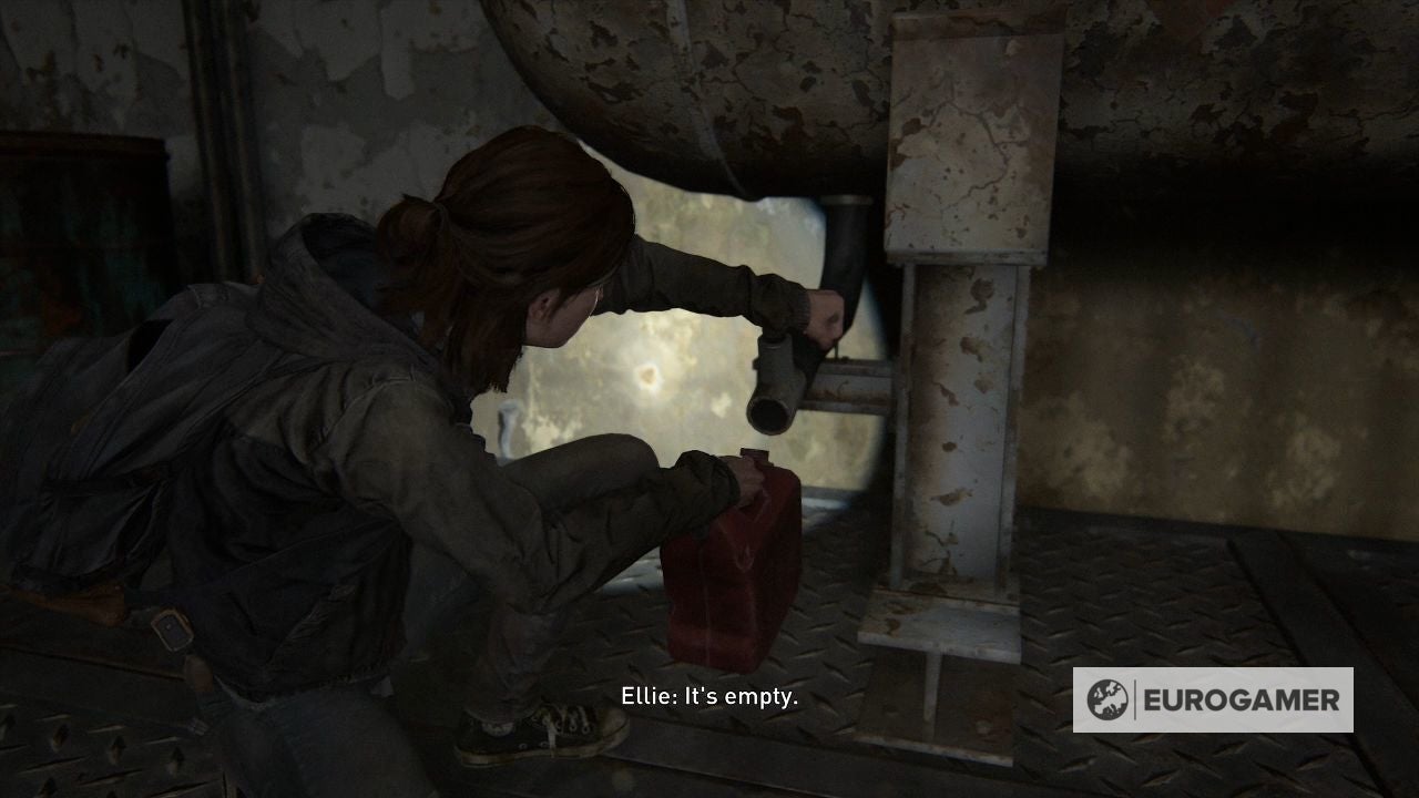 Als je naar de Last of Us 2 Koepel (Dome) gaat voordat je de Last of Us 2 Rechtbank (Courthouse) bezoekt, dan zal je daar een brandstoftank aantreffen. Helaas is de tank leeg, maar je neemt wel de jerrycan mee.