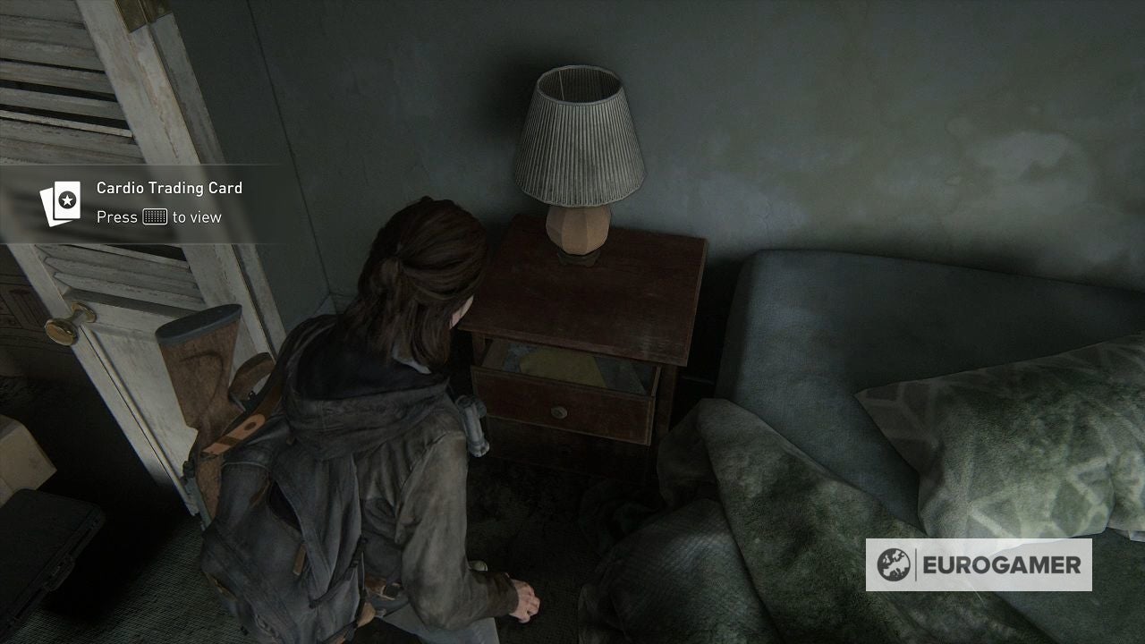 Je kan ook over het bed in de hoek van de eerste kamer springen om meer items te vinden, en in een nachtkastje ligt ook een Cardio ruilkaart.