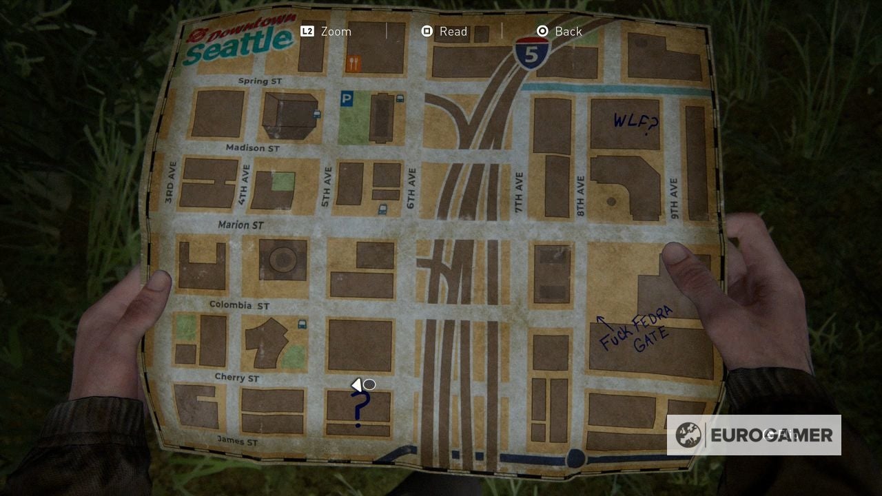 Ga nu terug naar de Last of Us 2 Binnenstad van Seattle (Downtown Seattle) en ga verder op onderzoek. Als je het nog niet gedaan hebt, is het misschien de moeite waard om de Last of Us 2 Koepel (Dome) of de Last of Us 2 Rechtbank (Courthouse) te bezoeken.