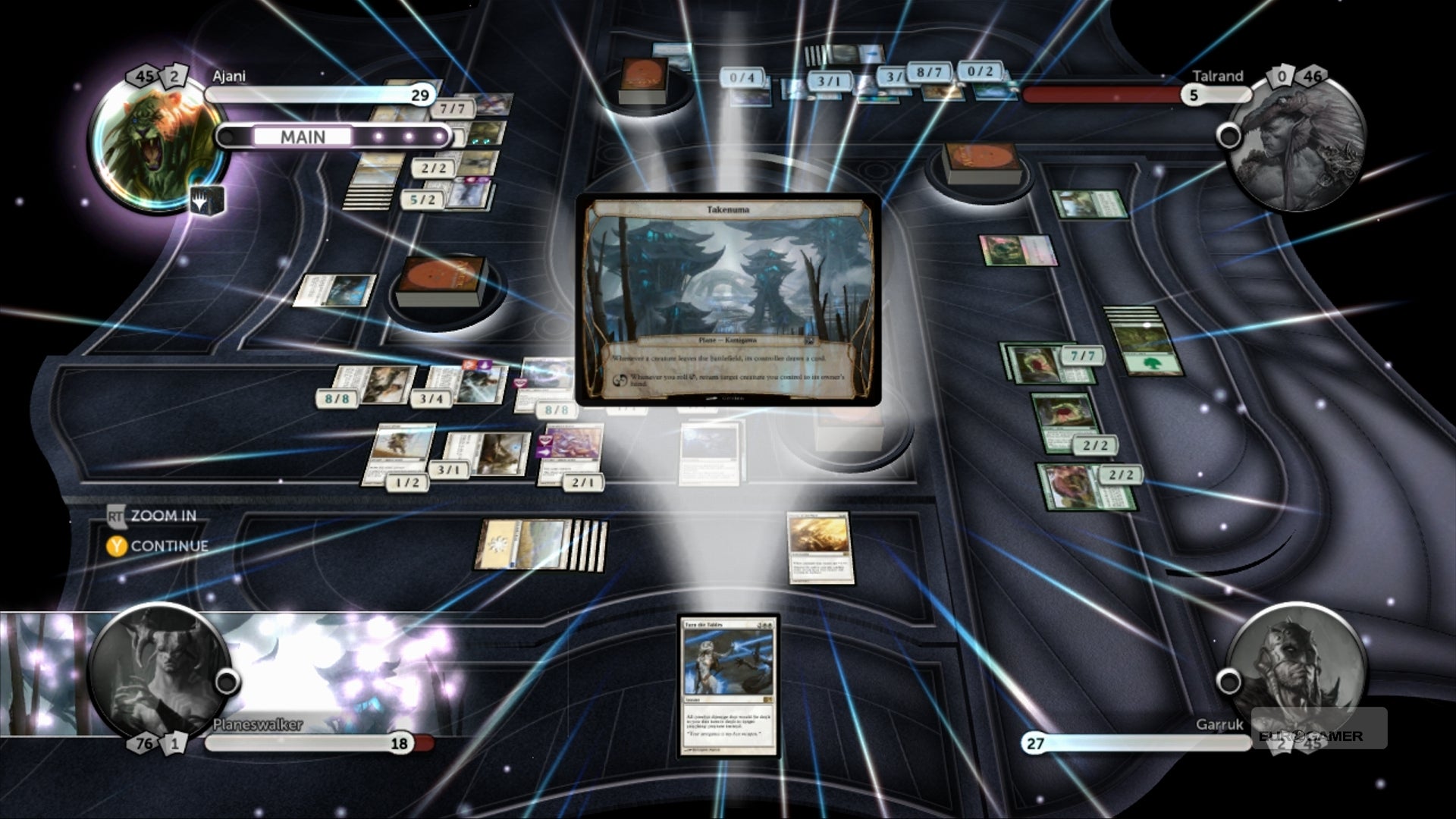 De scepscis waarmee ik aan die taak begon werd echter snel van tafel geveegd en vervangen door een hoop manakaarten, beestenkaarten, artefacten, spreuken en ander lekkers. Duels of the Planeswalkers 2013 presenteert het allemaal heel mooi en zorgt ervoor dat zelfs nieuwkomers het overzicht makkelijk kunnen behouden door alle gespeelde kaarten duidelijk te tonen en te plaatsen. Bovendien zijn de uitstekende tutorial en het hintsysteem bijzonder handig tijdens de eerste partijtjes. De instapdrempel is bijgevolg laag genoeg en hoewel het spijtig is dat terugkerende kaarten van het kerkhof enkel vluchtig getoond worden, is dit slechts een klein euvel in wat anders een uiterst gestructureerd en duidelijk spelverloop is.