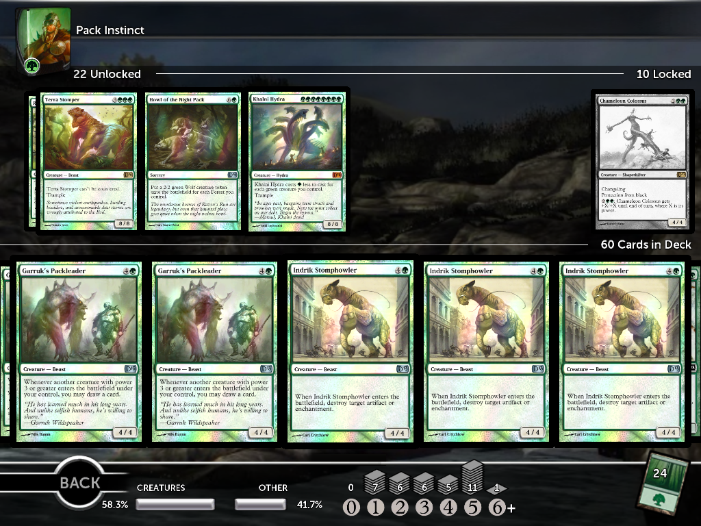 Elk van de tien decks begint met zestig kaarten en kan uitgebreid worden met dertig extra kaarten die je vrijspeelt door met dat deck wedstrijden te winnen. Vervolgens kan je het deck in beperkte mate beginnen aanpassen aan jouw speelstijl of een bepaalde tegenstander door er kaarten uit te halen of net bij te stoppen. Het enige jammere is dat het percentage landkaarten in je deck vaststaat en niet aangepast kan worden wat voor bepaalde decks betekent dat er net wat te veel of te weinig landkaarten in het deck zullen zitten. Gelukkig zijn de aanwezige decks voldoende gevarieerd en bieden de dertig extra kaarten voldoende mogelijkheden om als speler de smaak te pakken te krijgen van heel wat verschillende speelstijlen en het deck-builden.