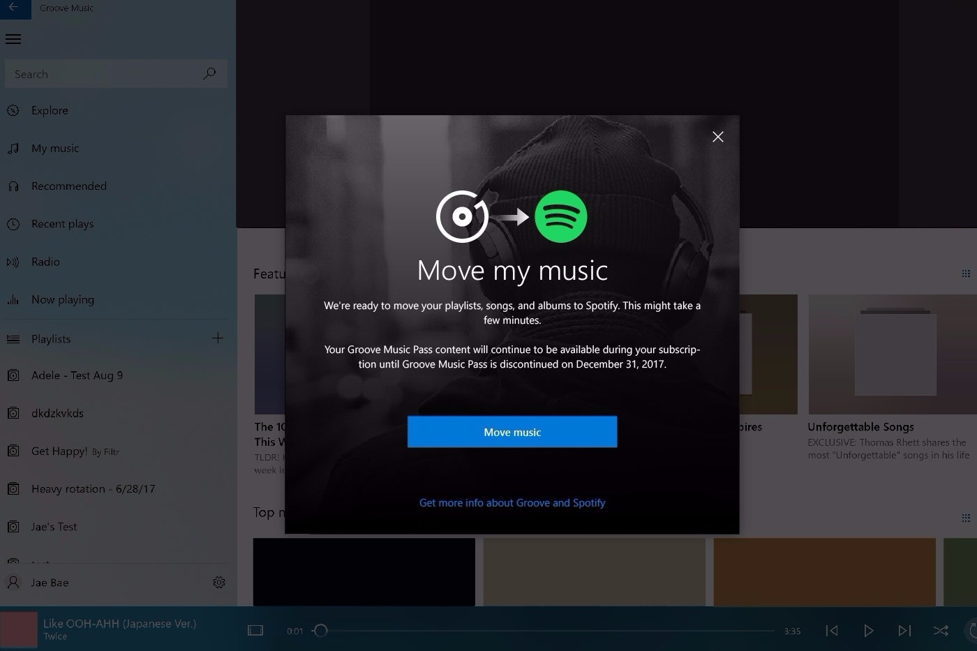 Microsoft heeft bekendgemaakt dat de muziekstreamingdienst Groove Music vanaf 31 december ophoudt te bestaan. Music Pass-abonnees kunnen tot en met 31 januari de overstap maken naar Spotify.