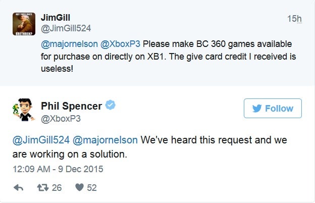 Microsoft werkt aan een manier om Xbox 360-games op de Xbox One te kunnen verkopen. Dit laat de Xbox-baas Phil Spencer weten via een Twitterbericht aan een fan .
