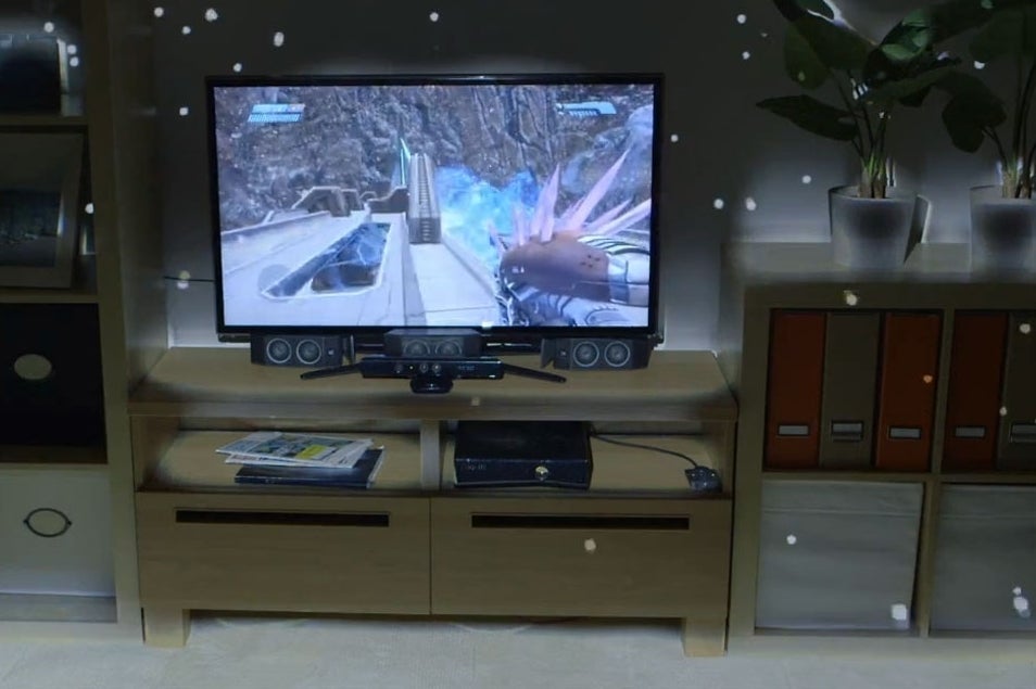 IllumiRoom is een concept dat vorig jaar voor het eerst werd gepresenteerd. Een Kinect-camera werkt samen met een projector om de gamebeelden van de televisie naar buiten te projecteren. Zo wordt de hele kamer omgetoverd tot spelwereld.