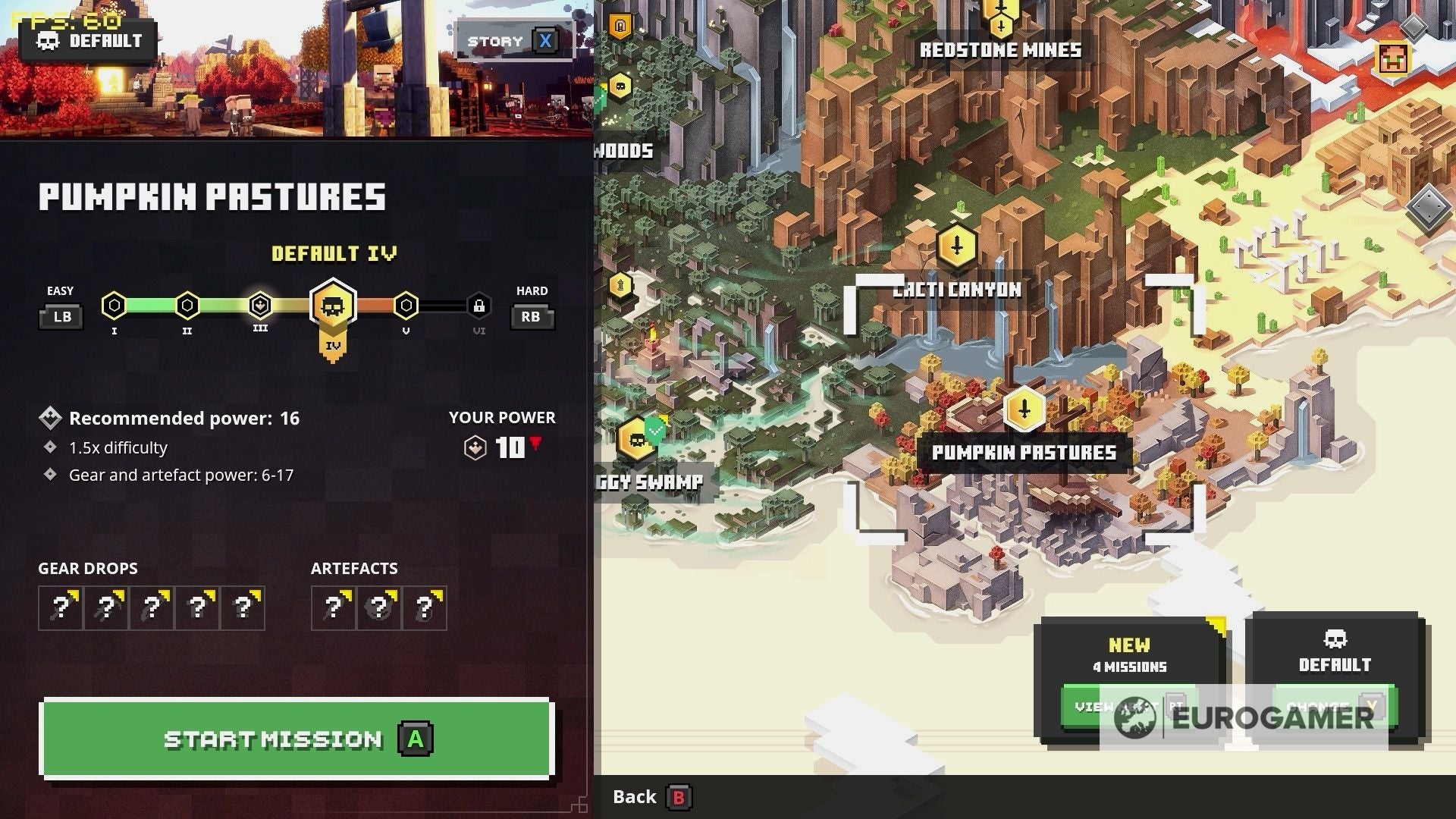 - Wees niet bang om de moeilijkheidsgraad te verhogen, Minecraft Dungeons is algemeen gesproken geen moeilijke game. Je kan de moeilijkheidsgraad aanpassen voordat je elke level start, en we raden aan om deze op minstens 1.4x te zetten voor de eerste levels. Dan krijg je een mooie uitdaging met bijhorende mooie loot.