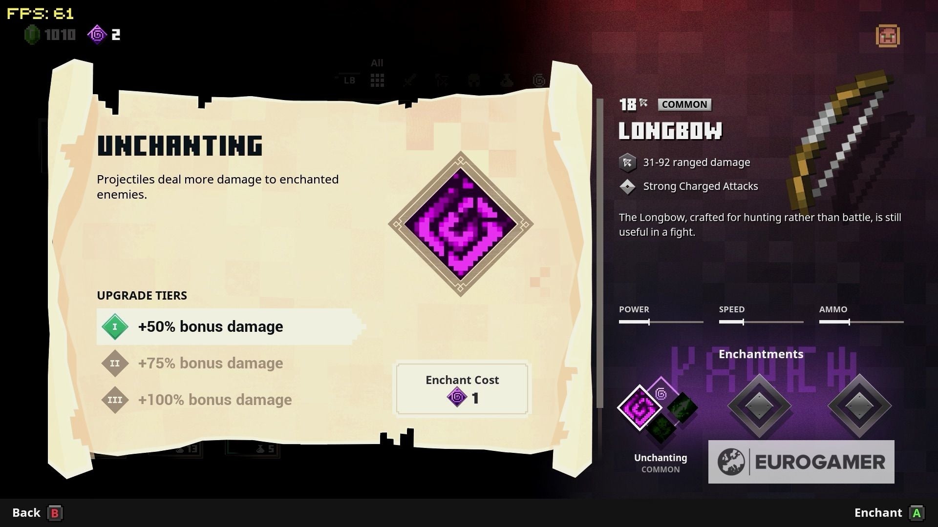 - We raden ook aan om regelmatig even te stoppen en in je inventory te kijken, ook als je bezig bent met een dungeon te verkennen. Het is gemakkelijk om even niet op te letten met wat je opraapt, en misschien heb je onderweg wel erg nuttige loot gevonden. En sommige wapens zien er op eerste zicht niets bijzonders uit, maar als je Enchantment punten inzet, kan je ze wel een goede boost geven voor specifieke situaties. Zo kan je wapens bijvoorbeeld extra damage doen geven aan de undead of aan Enchanted vijanden.