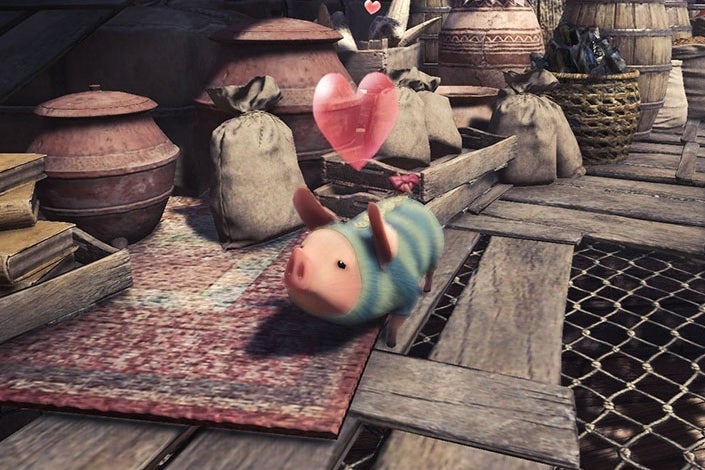 Wist je al dat je iedereens nieuwe favoriete varken in Monster Hunter World kunt aankleden? Er zijn namelijk verschillende kostuums voor Poogie in Astera verstopt. Misschien wilde je altijd al bij een varken in schaapskleren steken of in een schattige kikker-outfit. Er is zelfs een kroon.