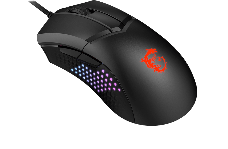 De gepatenteerde ‘MSI Diamond Lightgrips’ verheffen de anderzijds doorsnee looks van de MSI Clutch GM51. Die ‘lightgrips’ zorgen ervoor dat de zijkanten van de zwarte muis een smaakvolle reeks aan RGB LED op een diamantenpatroon tonen. Het past goed bij het lichtgevende MSI-drakenlogo op de rug van de muis. Die rug ziet er echter een stuk minder smaakvol uit. Het zwart heeft namelijk niet dezelfde tint als die op de zijkanten en er zit een rare inkeping tussen de rug van de muis en de basis van de knoppen. Die inkeping doet vermoeden dat de rug afneembaar is, maar niets is minder waar. De MSI Diamond Lightgrips maken dan ook een hoop goed, maar de Clutch GM51 verdient alsnog geen schoonheidsprijs.