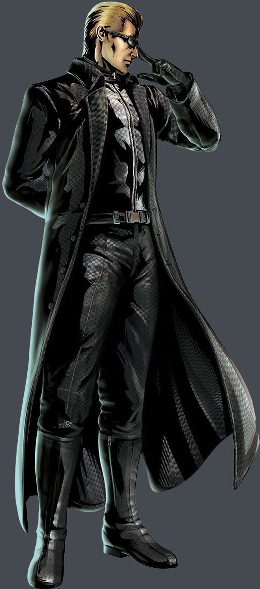 Albert Wesker is één van de hoofd-antagonisten uit de Resident Evil reeks. De man heeft alvast een rijk verleden: oorspronkelijk een ondersteunend persoon, vervolgens een dubbelspion, uiteindelijk vermoord, opnieuw tot leven gewekt via een experimenteel virus en uitgegroeid tot iets transhumaans. In ruil voor zijn menselijkheid kreeg onze goeie vriend Albert bovennatuurlijke kracht, snelheid en regeneratiefactor. Met zijn stilistische zonnebril en lange zwarte overcoat, valt Wesker qua uiterlijk het best te omschrijven als de slechte tweelingsbroer van Neo. In MvC 3 laat hij het hele gedoe rond de Umbrella Corporation even voor wat het is en besluit met Doctor Doom samen te werken om een leger van superschurken te creëren.