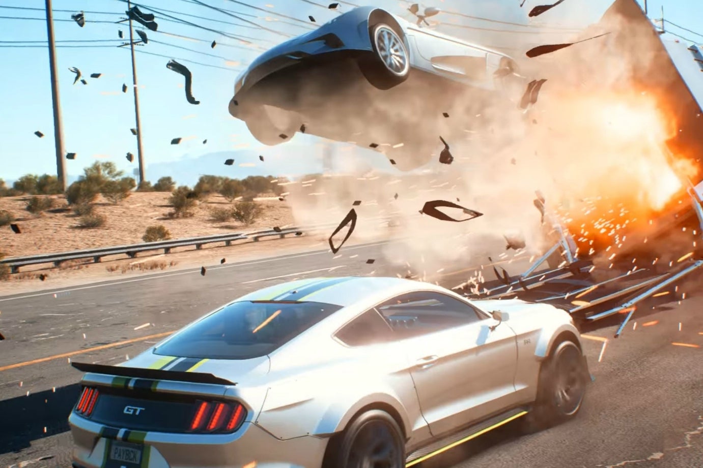 Er is echter weinig tijd voor sightseeing want de rode woestijn is het strijdtoneel voor brute confrontaties. In de demo krijgen Tyler en Jess namelijk te maken met The House, dat met een konvooi de vrachtwagen goed beschermt. Het is belangrijk om de vrachtwagen bij te houden, maar de Enforcers gooien roet in het eten. Wat volgt, is een spelletje tikkertje met de Ford Mustang GT en het konvooi. Ghost Games laat op Burnout-achtige wijze de gevolgen zien. Meerdere auto's vliegen uit de bocht en een andere komt tegen de vele rotsblokken tot stilstand. Need for Speed Payback gebruikt slow motion om je de crashes in volle glorie te tonen. Door de spectaculaire takedowns word je op verslavende wijze aangespoord om andere weggebruikers van de weg af te tikken.
