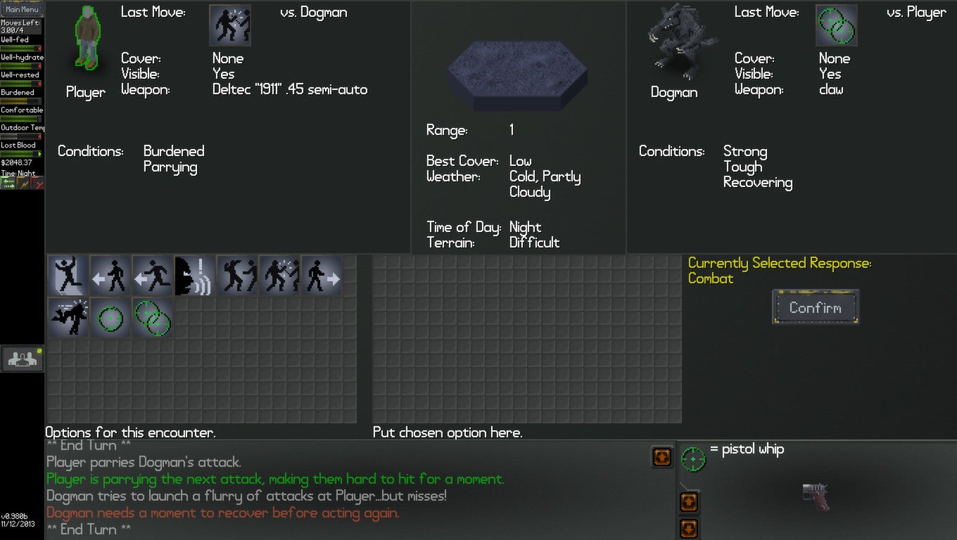 In zo'n gewelddadige wereld is er geen garantie op veiligheid. Hoe goed je de natuur uiteindelijk ook naar je hand weet te zetten, een vijand met een jachtgeweer is niet snel onder de indruk van je botanische kennis. De gevechten spelen zich op klassieke turn-based manier uit en geeft je aantal uitgebreide opties om het gevecht aan te gaan. Zo plaats je bijvoorbeeld een val om de vijand schade toe te brengen, verstop je jezelf om minder makkelijk geraakt te worden of kies je voor de optie om al je spullen af te staan omdat je weet dat je dit gevecht anders niet overleeft.