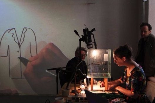 De expositie, die over verschillende locaties in de Brakke Grond verspreid is, geeft een verlaten indruk. Hoewel mensen buiten op het terras volop van het lenteweer genieten, voel ik me binnen helemaal alleen. Een groter contrast met de megalomane gameconventies bestaat er vrijwel niet. Geen schreeuwerige advertenties, geen ontwikkelaars die je bij de kraag grijpen om hun game te tonen. Ik sta in een kille foyer waar enkele willekeurig opgestelde pc's zachtjes staan te brommen. In een lege zaal ligt een kaartspel zonder spelregels op tafel.