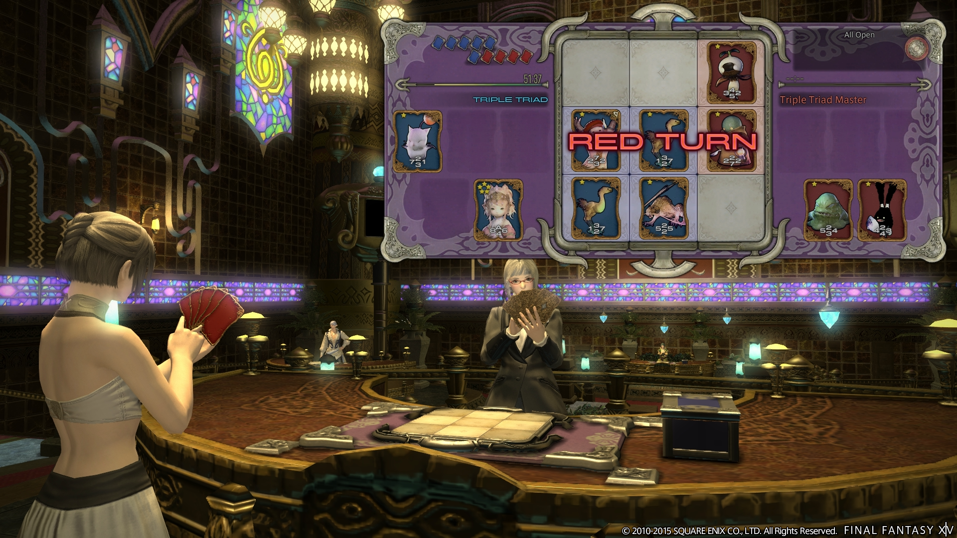 Race met Chocobos of speel het Triple Triad kaartspel.