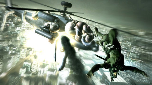 Het lijkt het einde voor een van de hoofdplaatsen van de wereld, totdat er ninja's tegenaan gegooid worden vanuit helikopters. Als Ken Ogawa, ninja en uit de toon vallende Amerikaan, begin je de openingsmissie in vrije val boven Tokyo, vliegende monsters uit de weg helpend met quick time events, het eerste been van een verder nogal onhandig ingedeelde tutorial. Dan crash je in slow motion door een raam, een troep vijanden in, en brutaal poserend met je katana begint het eerste gevecht, wat meteen de toon zet. Visueel spektakel moet de bedoeling zijn van Ninja Blade, maar de graphics volgen het verhaal in de middelmatigheid: animaties zijn wisselvallig, textures kunnen van dichtbij niet helemaal meer overtuigen, en hoewel Ninja Blade geen lelijke game is, is hij zeker ongeïnspireerd. Met de wegwerpomgevingen van het grijsbruine Tokyo, en de vele verwijzingen naar the Matrix, beperkt de game zich tot lenen van de groten, soms rechtuit stelen, en stijgt nooit boven de laagste conventies van het genre uit. De dreiging van totale vernietiging uit de onverschillige lucht, de opvallend kleine hoofden van personages dankzij de niet helemaal juist toegepaste anime stijl - dit is Standaard Japan, en voelt aan als een futloos cliché.