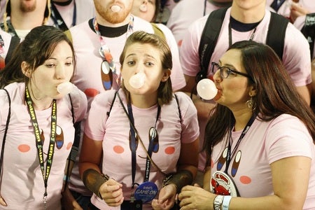 Nintendo heeft officieel het wereldrecord 'tegelijkertijd kauwgombellen blazen' verbroken tijdens het PAX-evenement. Of nou ja, de 536 mensen die er aan meededen dan toch. Dit om te vieren dat het (vaak niet te verwarren met een roze kauwgombal) personage Kirby 20 jaar bestaat.