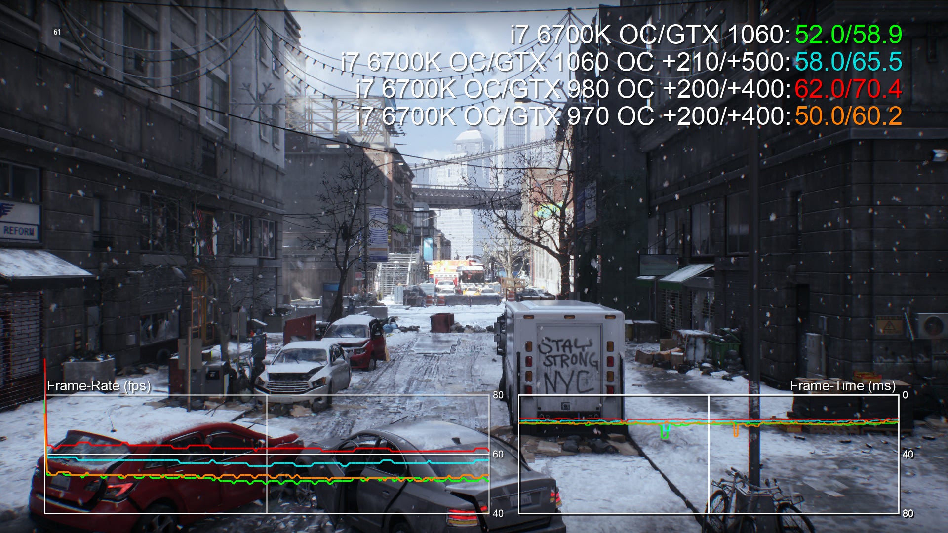 | 1920x1080 (1080p) | GTX 1060 | GTX 1060 OC | GTX 980 | GTX 980 OC | GTX 970 | GTX 970 OC |