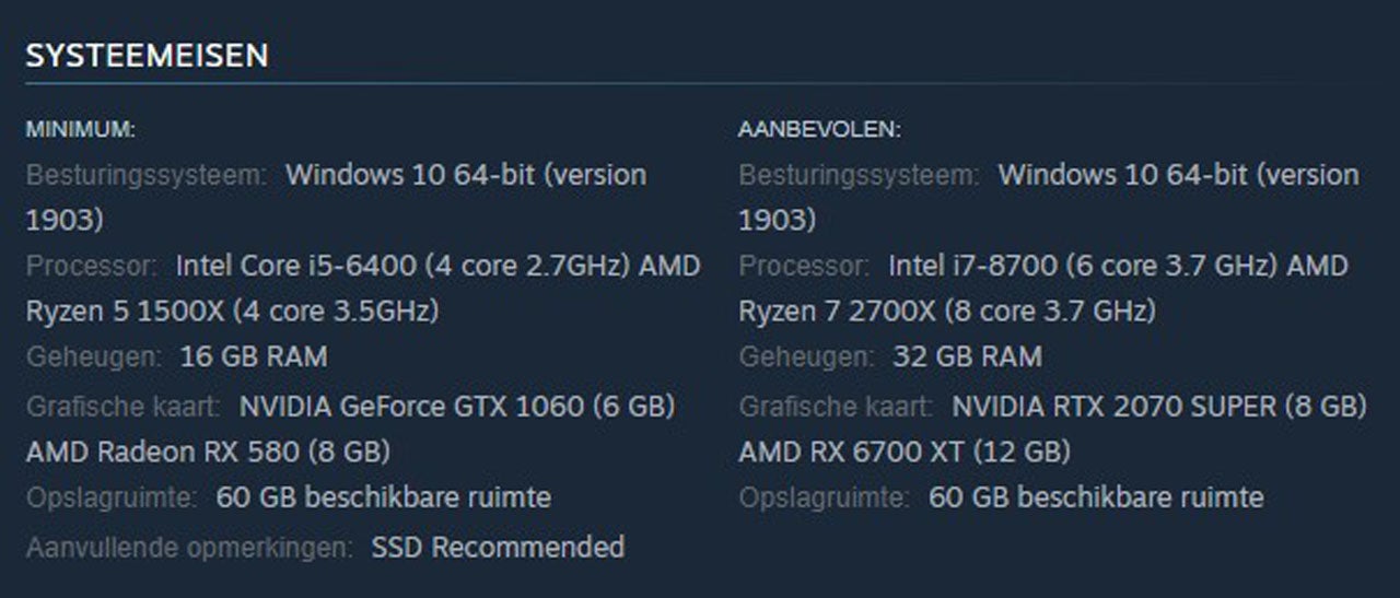 Je pc moet aan de volgende minimale en aanbevolen vereisten voldoen om Returnal te spelen: