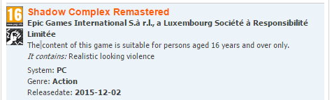 Pc-versie Shadow Complex duikt op in lijst PEGI