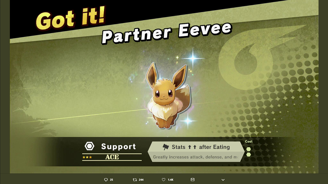 Nintendo maakt op Twitter bekend dat je als eigenaar van Pokémon Let's Go Pikachu en/of Let's Go Eevee gelijk Partner Pikachu en/of Partner Eevee vrijspeelt in Super Smash Bros. Ultimate op de Nintendo Switch.