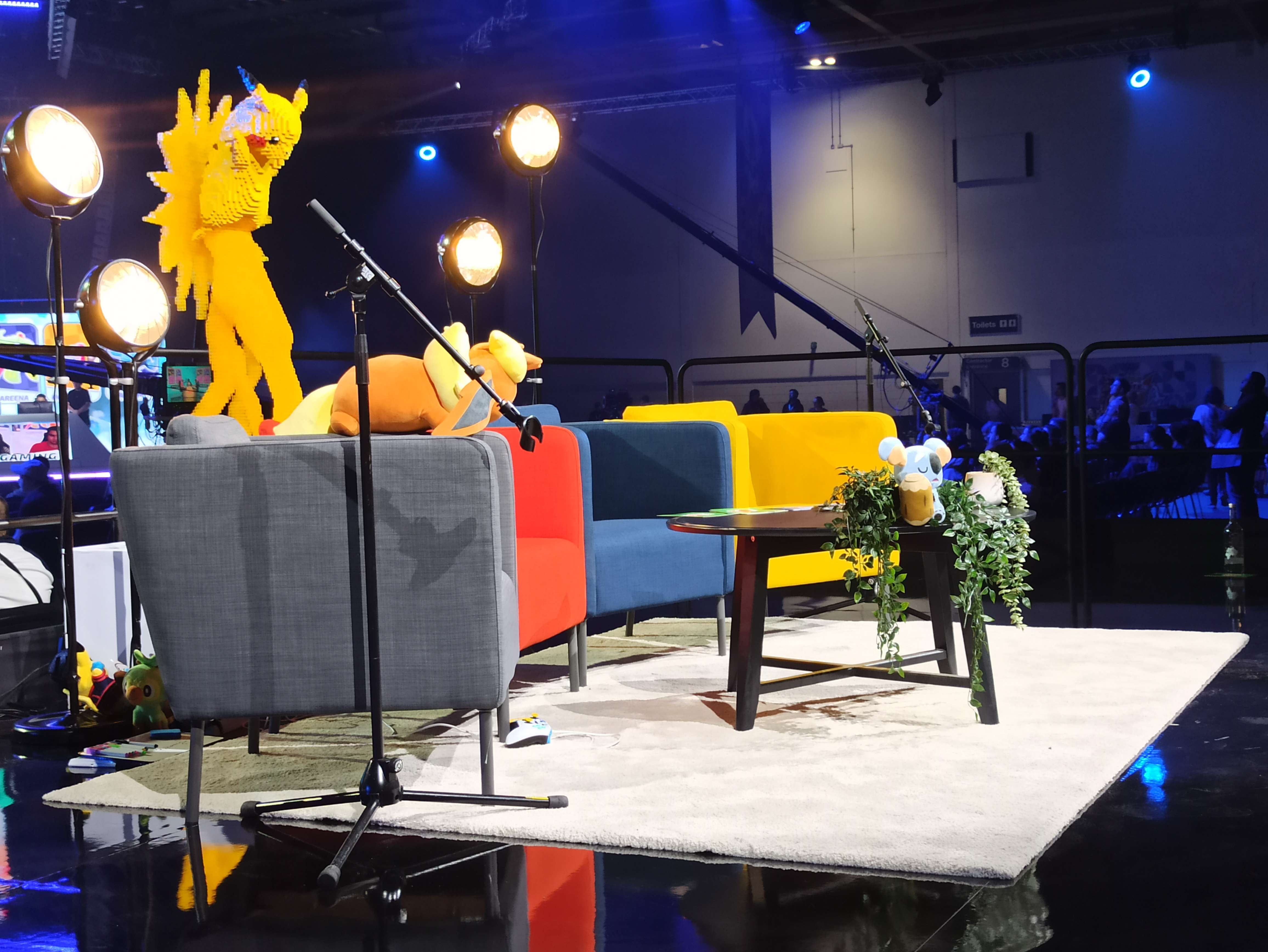 Nadat je door de met Pokémon gedecoreerde evenementenhal de zaal betreedt, zie je meteen de opvallende lichten van de vier podia waarop belangrijke wedstrijden worden gespeeld. Bij de ingang stuit je meteen op een aantal Pokémonwinkeltjes. Daar kun je verschillende accessoires kopen, en bijvoorbeeld je Trading Card Game-collectie met verzamelmappen en nieuwe kaarten uitbreiden. Die zijn zowel los als in grote ‘trainer boxes’ te koop. Naast de winkel ruilt een groep fanatieke trainers met elkaar om betere kaarten te scoren en hun collectie te vervolledigen. Het in Pokémon verhulde ExCel London ademt nu al een en al sfeer uit.